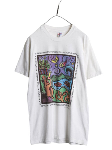 | 商品名 | 90s USA製 メッセージ アート イラスト プリント Tシャツ メンズ M 古着 オールド シングルステッチ ヘビーウェイト グラフィック ホワイト |