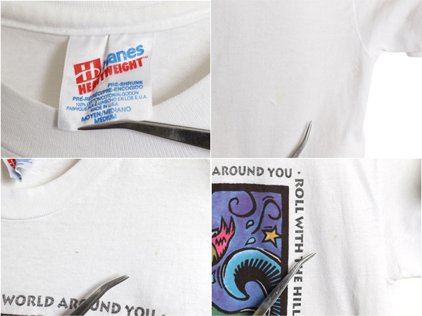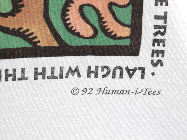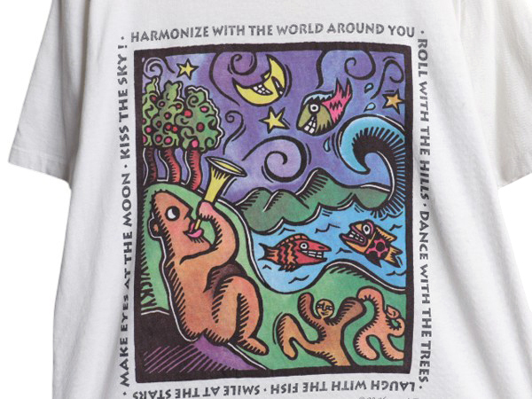 90年代のオールド メッセージ アート イラスト プリント Tシャツです。 環境問題などを啓発するデザインで知られる「Human-i-Tees」 1992年のコピーライト入り、オフィシャル ボディーは、Hanes ( へインズ ) 素材は、100% COTTON (コットン) しっかりとしたヘビーウェイト 着心地抜群の素材が使用されています。 MADE IN USA (アメリカ製) 裾・袖共にシングルステッチのオールドボディ フロントに、自然との調和を訴えたメッセージと アートイラストプリント「Human-i-Tees」らしい 環境について考えさせられるグッドプリント 現行ではなかなか見かけない、コストのかかる多色刷り 90年代らしい大判プリント、存在感のあるグッドデザイン 合わせやすい、ホワイト これだけで様になる商品です。 |