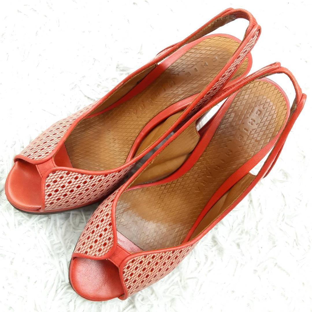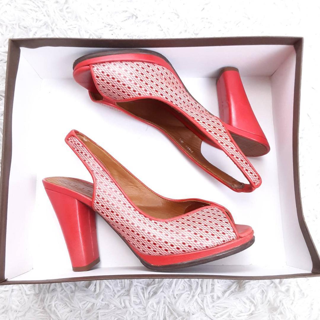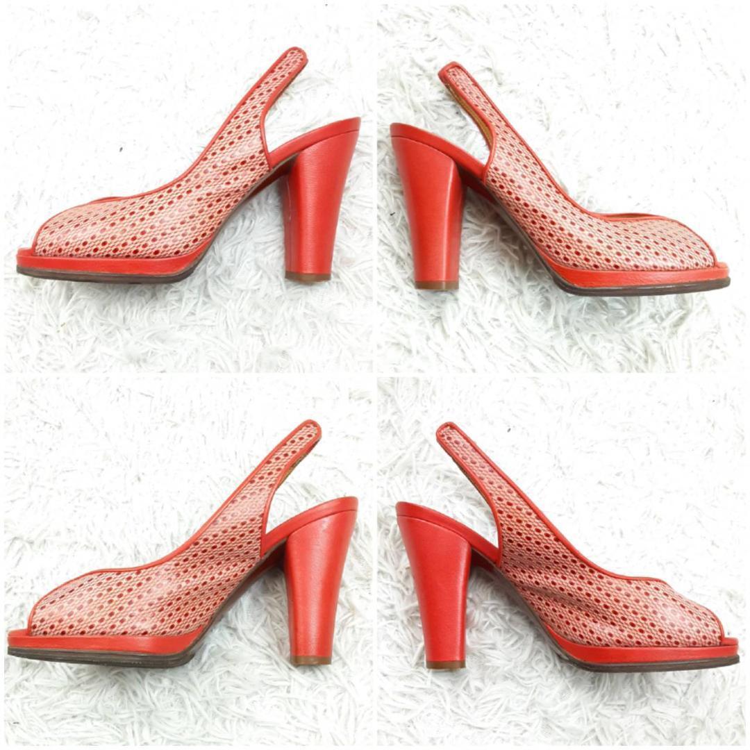 美品 23.5㎝◎CHIE MIHARA チエミハラ コンフォートサンダル ハイヒール ミュール レッド 赤 ブラウン 茶 オープントゥ メッシュ 保存箱付き