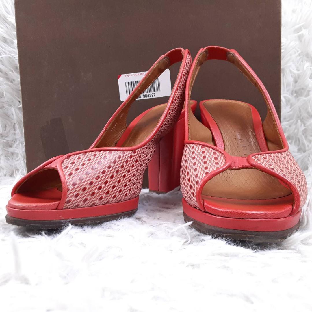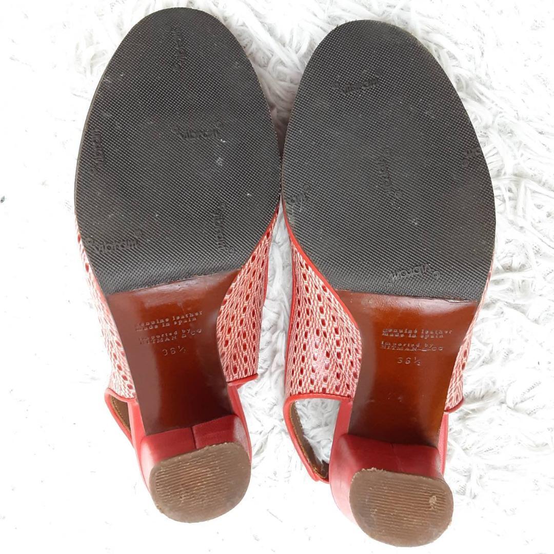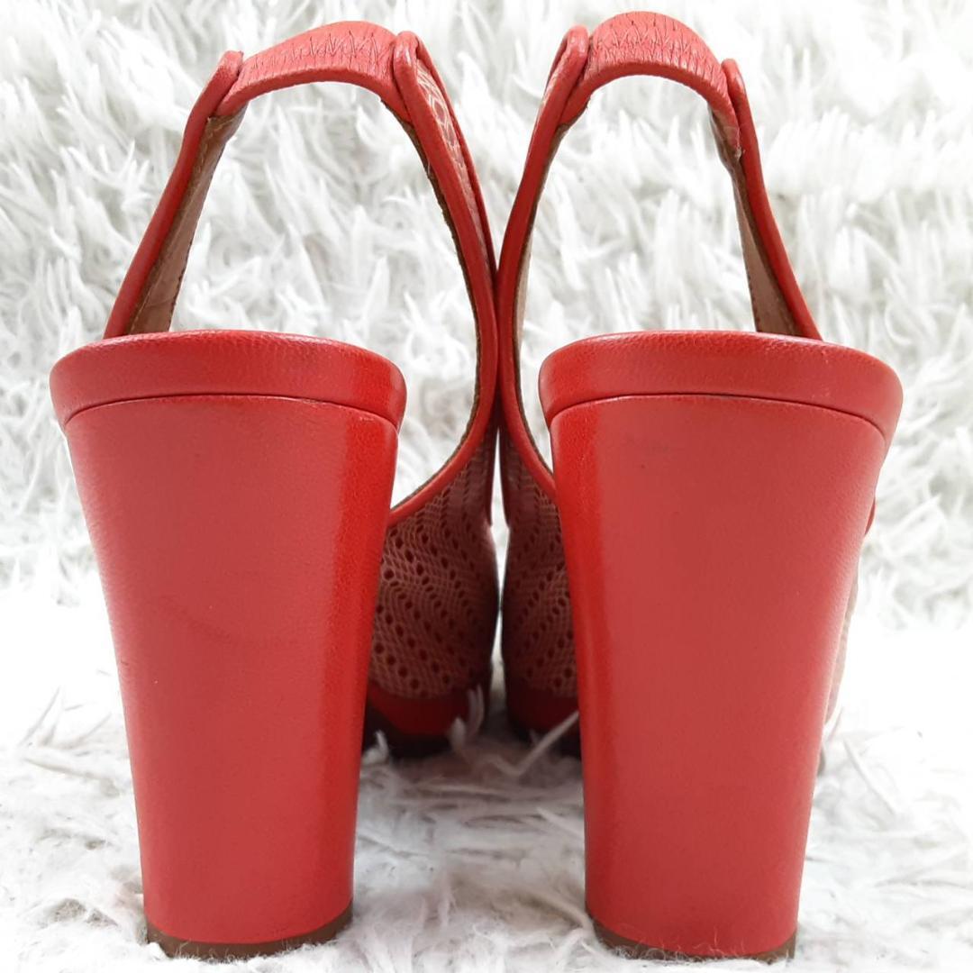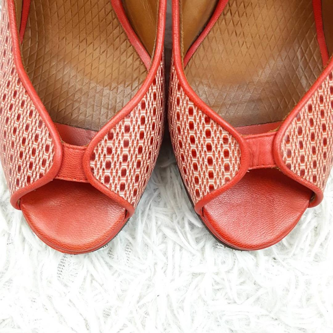 美品 23.5㎝◎CHIE MIHARA チエミハラ コンフォートサンダル ハイヒール ミュール レッド 赤 ブラウン 茶 オープントゥ メッシュ 保存箱付き