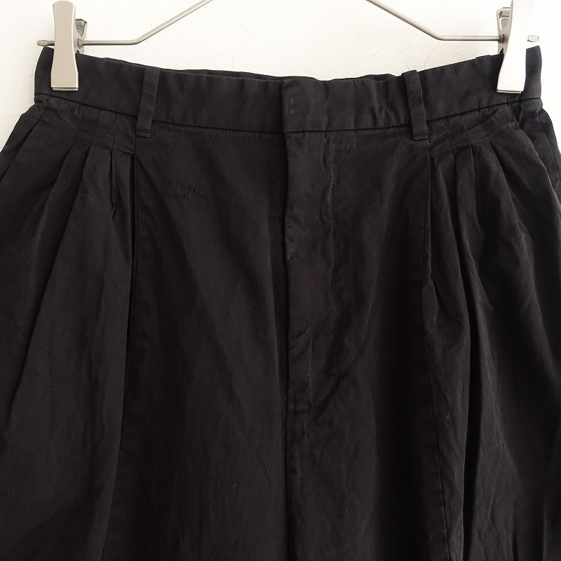 2024年春夏コレクション mina perhonenのchoucho 刺しゅうタックパンツです。カラーはスミクロで、所々に蝶刺しゅう入りの布帛地です。前腰&膝サイドにタック入りで、フロントのホック・内ボタン&ジッパーで着脱でき、前腰左右&ヒップ左右にポケットがございます。定価(メーカー希望小売価格)63,800円の商品です。こちらは、元々の製品に工房で染め直しを施しました。一枚一枚職人の手で染められたお洋服となります。 |