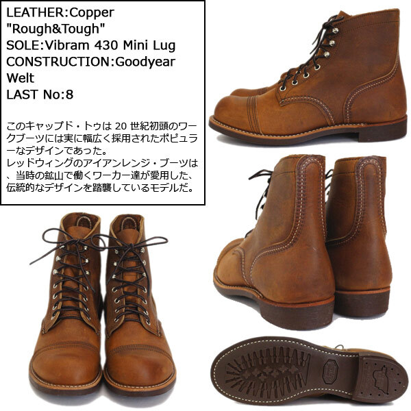 | 商品名 | 2017-2018年 新作 REDWING (レッドウィング) 8085 Iron Range (アイアンレンジブーツ) カッパーラフアンドタフ US11D-約29cm |