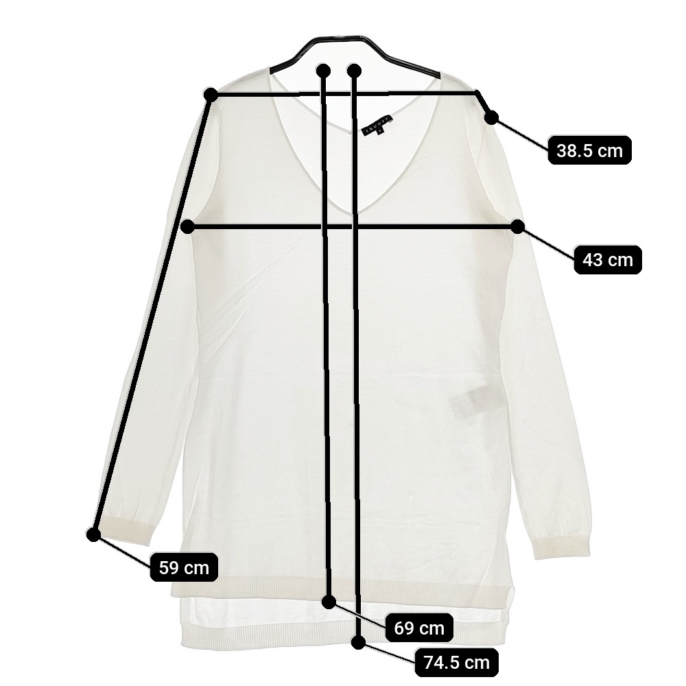実寸サイズ | 肩幅:約38.5cm 着丈(前):約69cm 着丈(後ろ):約74.5cm 身幅:約43cm 袖丈:約59cm ※記載以外のサイズが合わないことを理由とした返品はできませんので、 記載部分以外で実寸サイズの気になる箇所があれば必ず購入前にご質問ください。 |