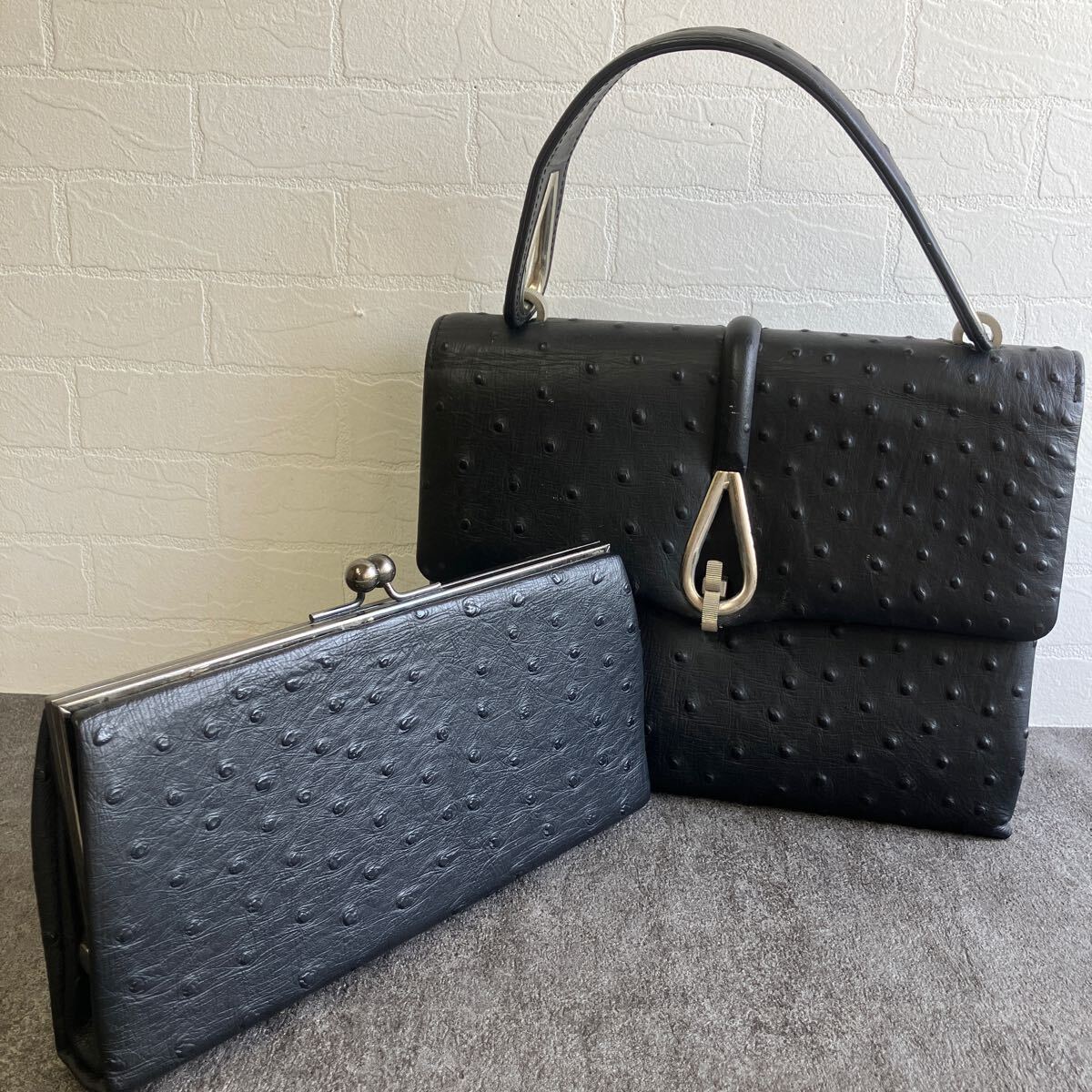 シルバーの留め具がレトロなオーストリッチのバッグ・2点セットです。
