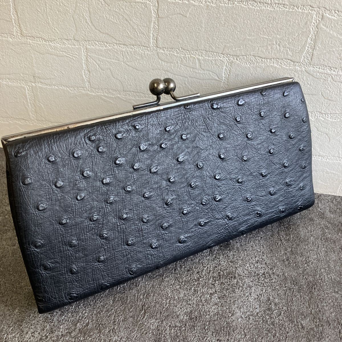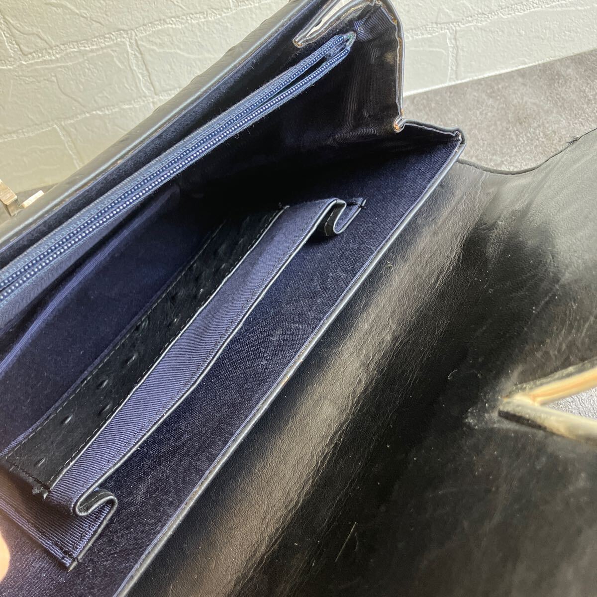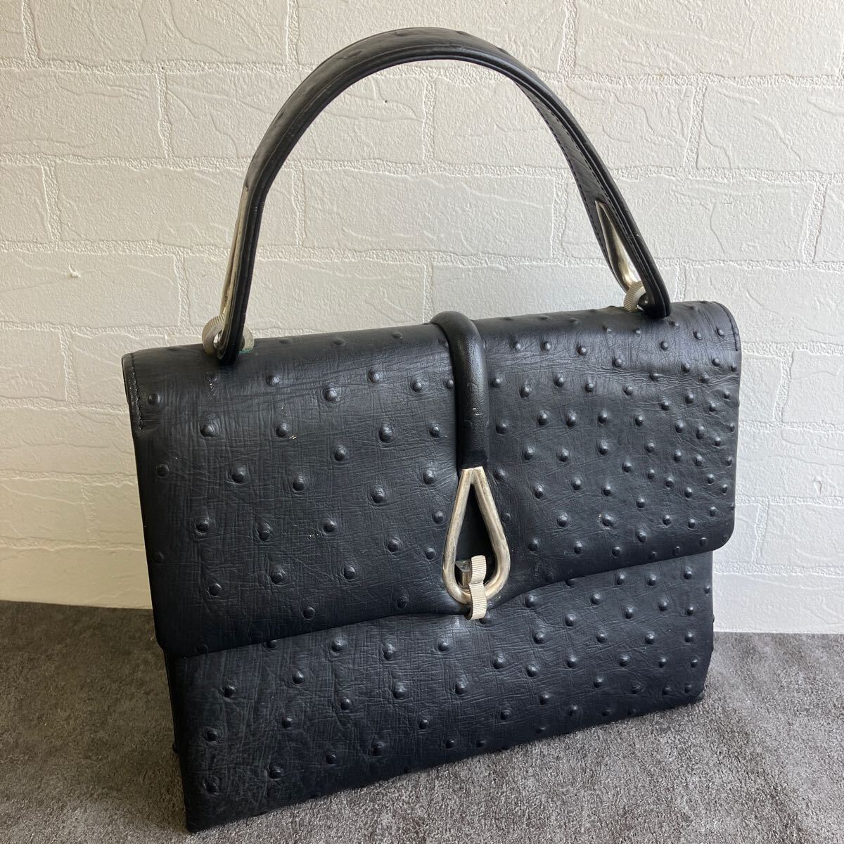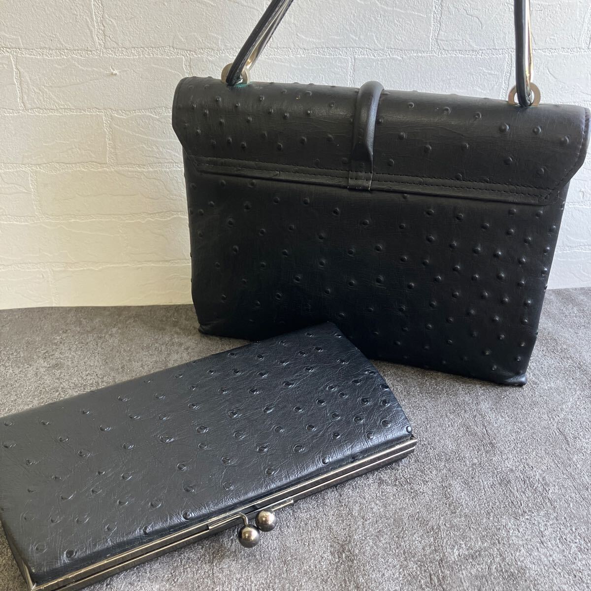 レトロ オーストリッチ レザー ダチョウ ハンドバッグ クラッチバッグ 2点 黒 ブラック フォーマル エキゾチックレザー レディース 中古