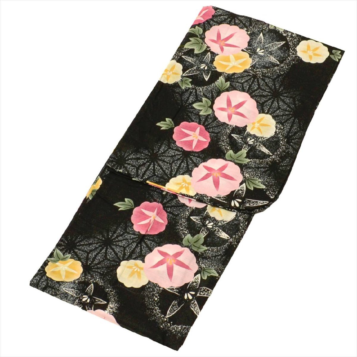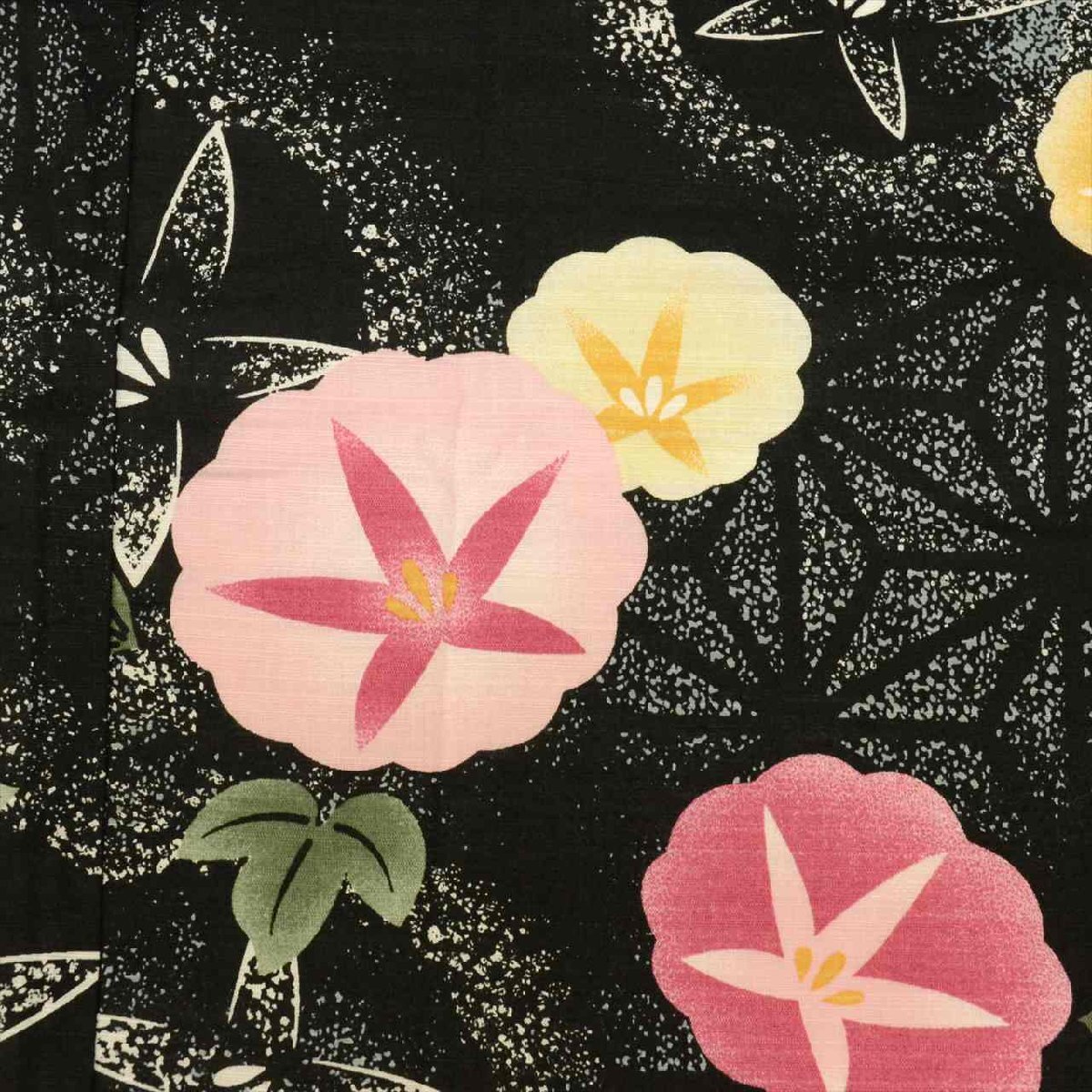 黒色に朝顔文様が施された可愛らしい女性用のリサイクル浴衣です。