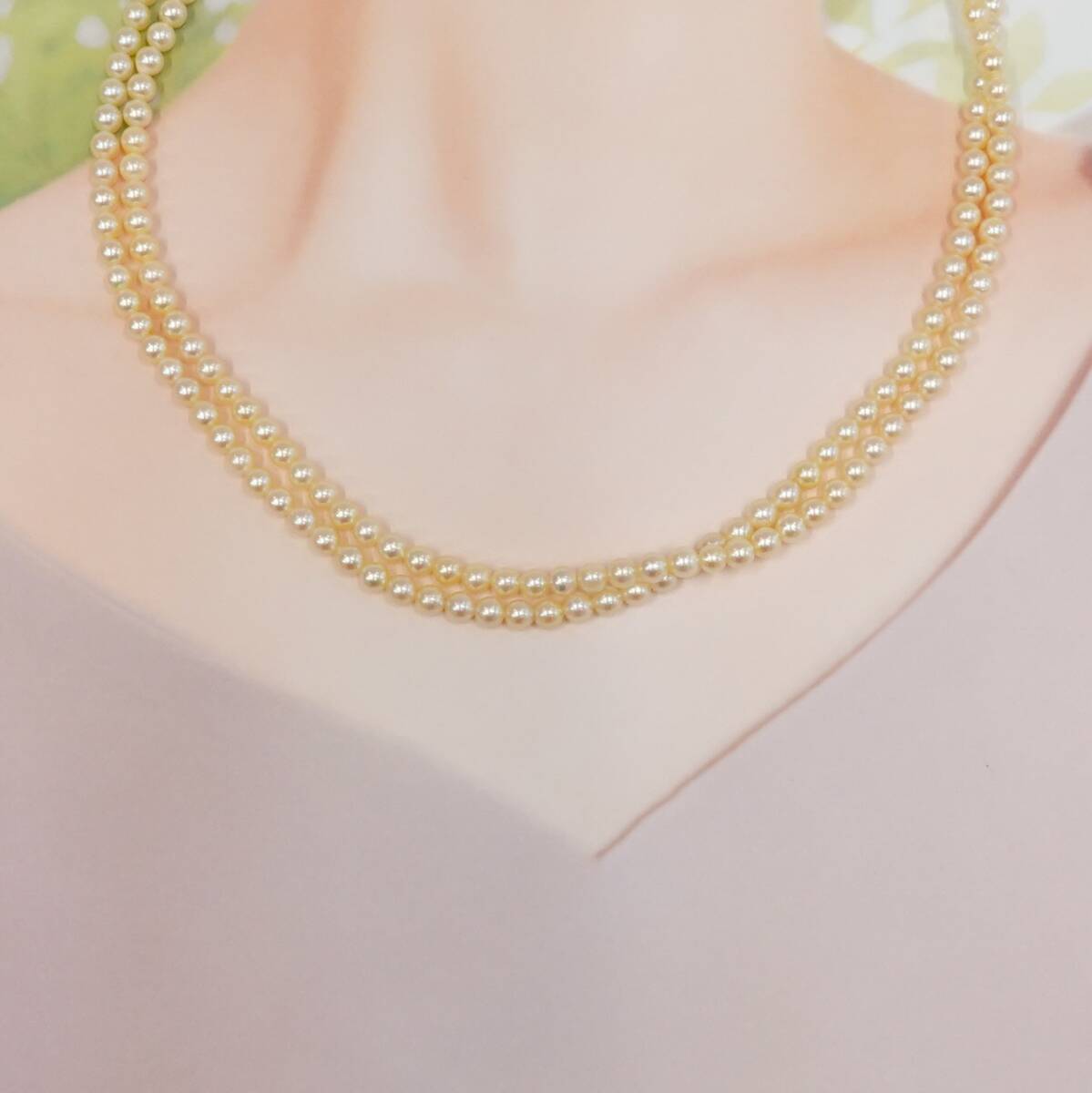 TASAKI タサキ 田崎真珠 あこや真珠 ベビーパール 2連ネックレス 約5.0-5.5mm 約52cm K18金具