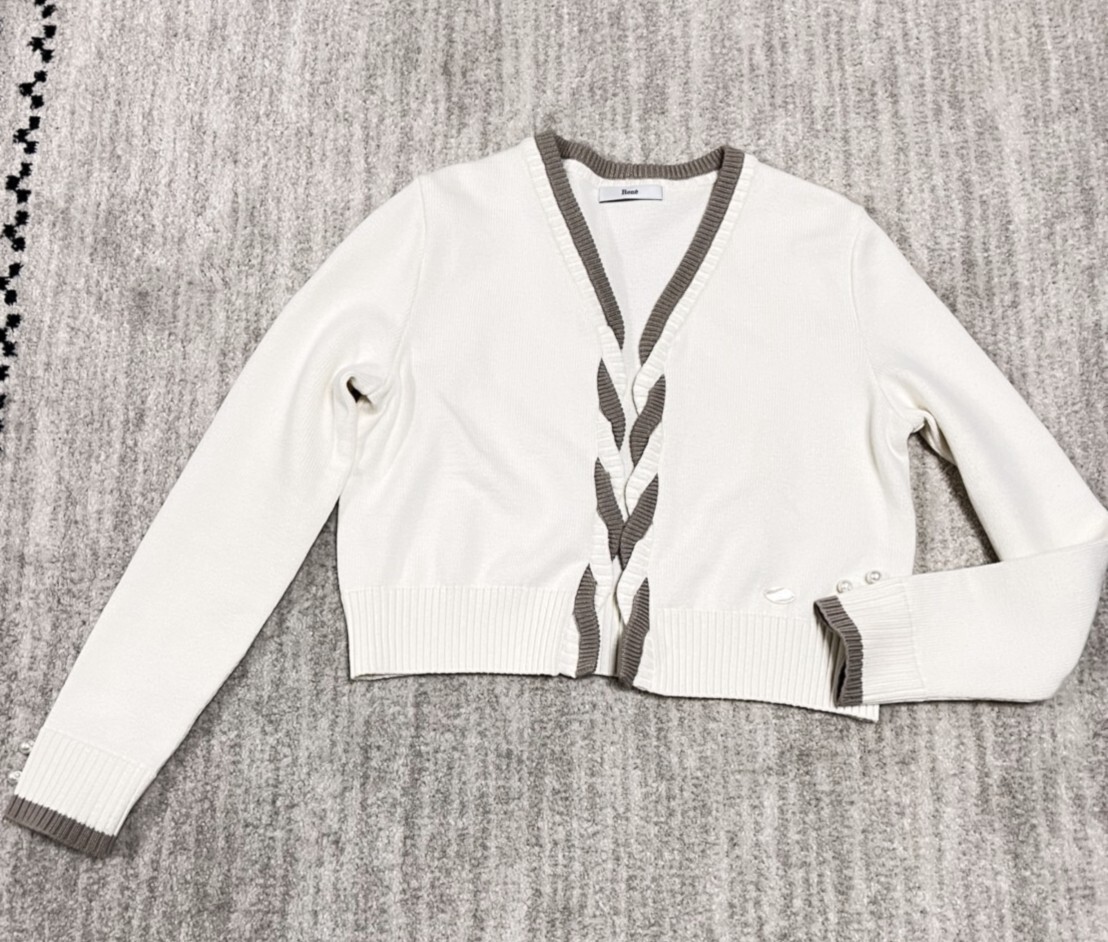 Rene ルネ 22SS 袖パール オープンフロント ニット カーディガン 38サイズ  46,200円のお品 ●理由有り