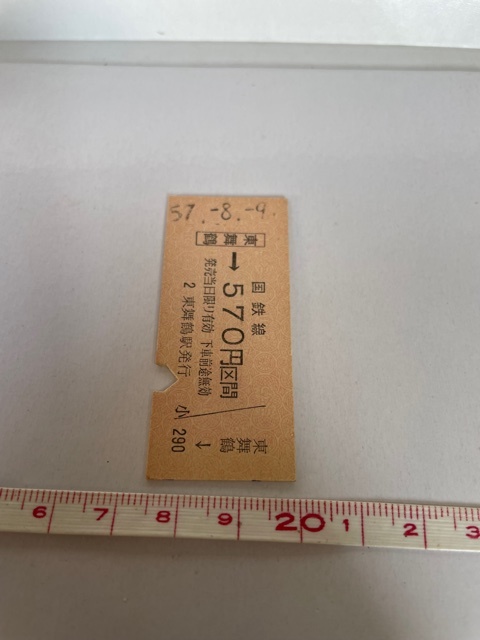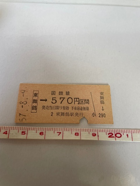 | ◎国鉄線 東舞鶴→570円区間 東舞鶴駅発行 B型 硬券乗車券 S.57またはS.58 店番-硬券259 | |
