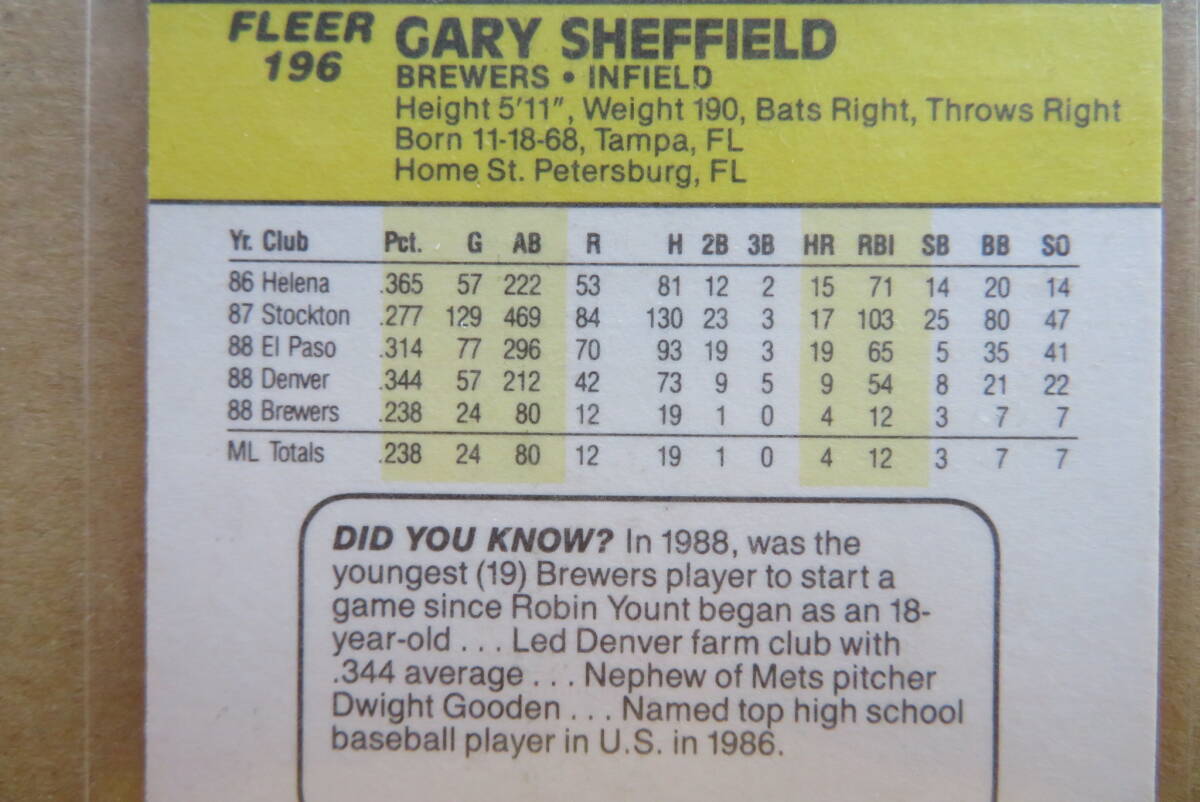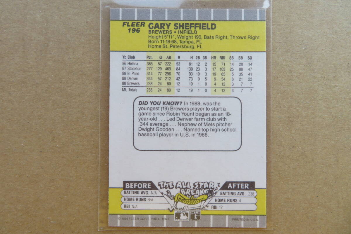 1989 FLEER CARY SHEFFIELD BREWERS MLB メジャーリーグ ヴィンテージ アメリカ ガレージ 店舗 コレクション ディスプレイ USA(A-536)