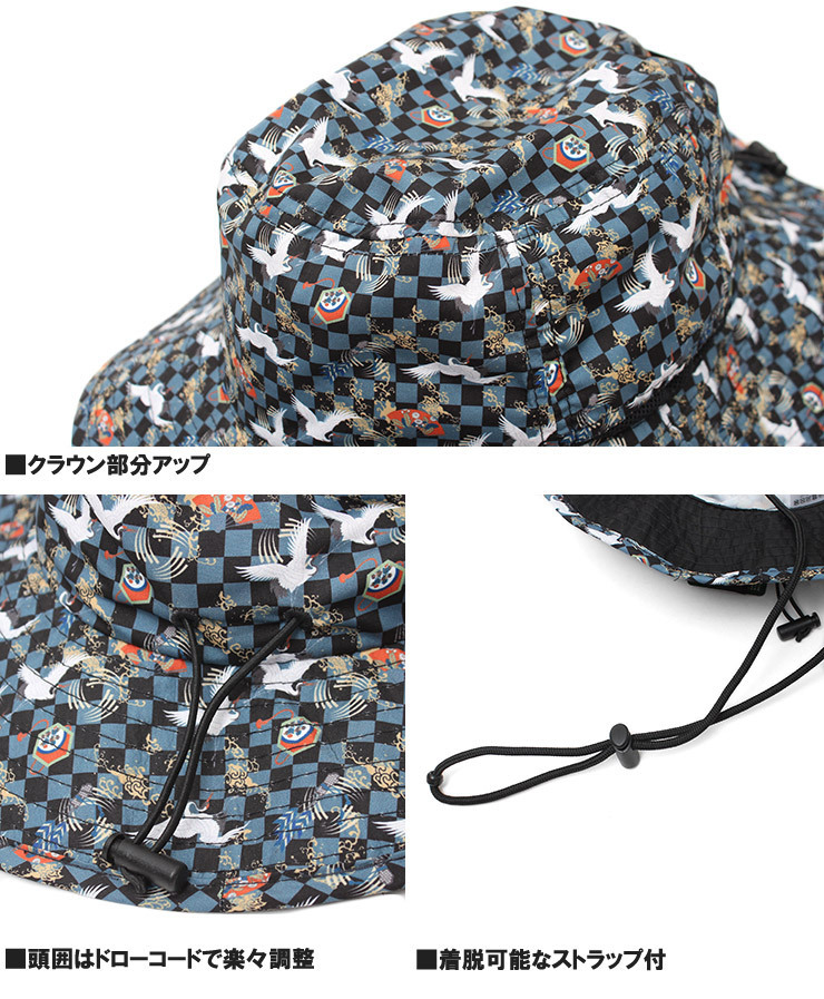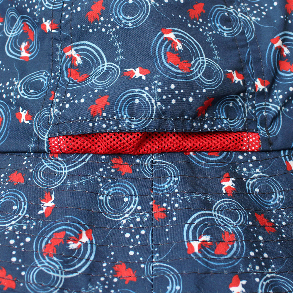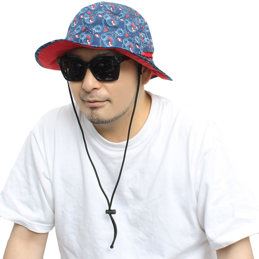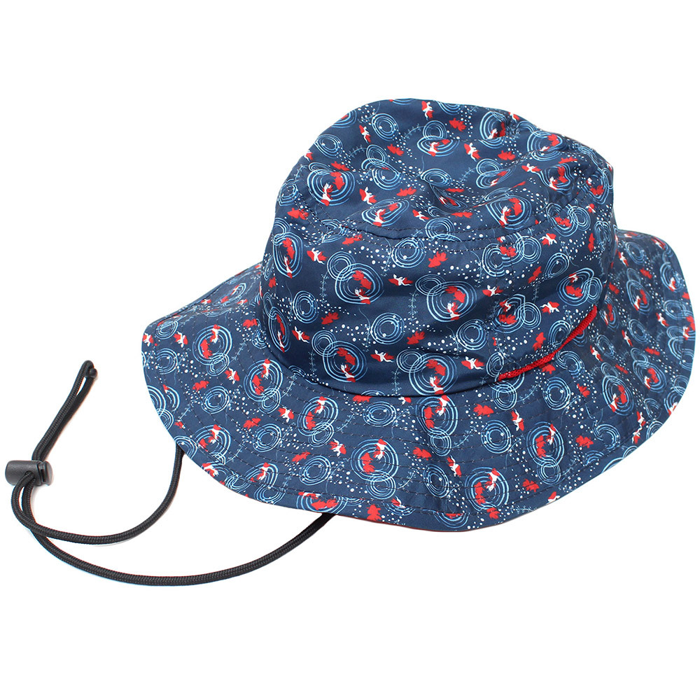 | 商品名 | 【新品】 M 58cm 金魚ネイビー 撥水 和柄 アドベンチャーハット メンズ 紐付き アウトドア 転写 プリント サファリハット |