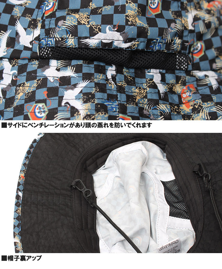 | 商品説明 | アウトドアや野外イベント等で活躍間違いなしの和柄転写プリントのアドベンチャーハットが登場。 |