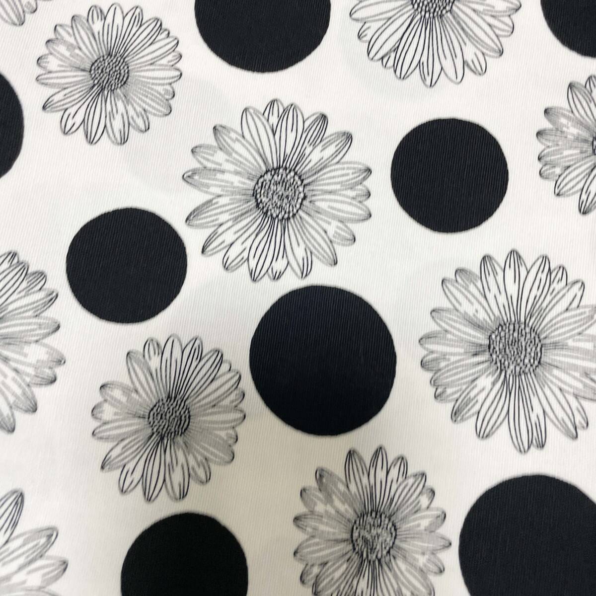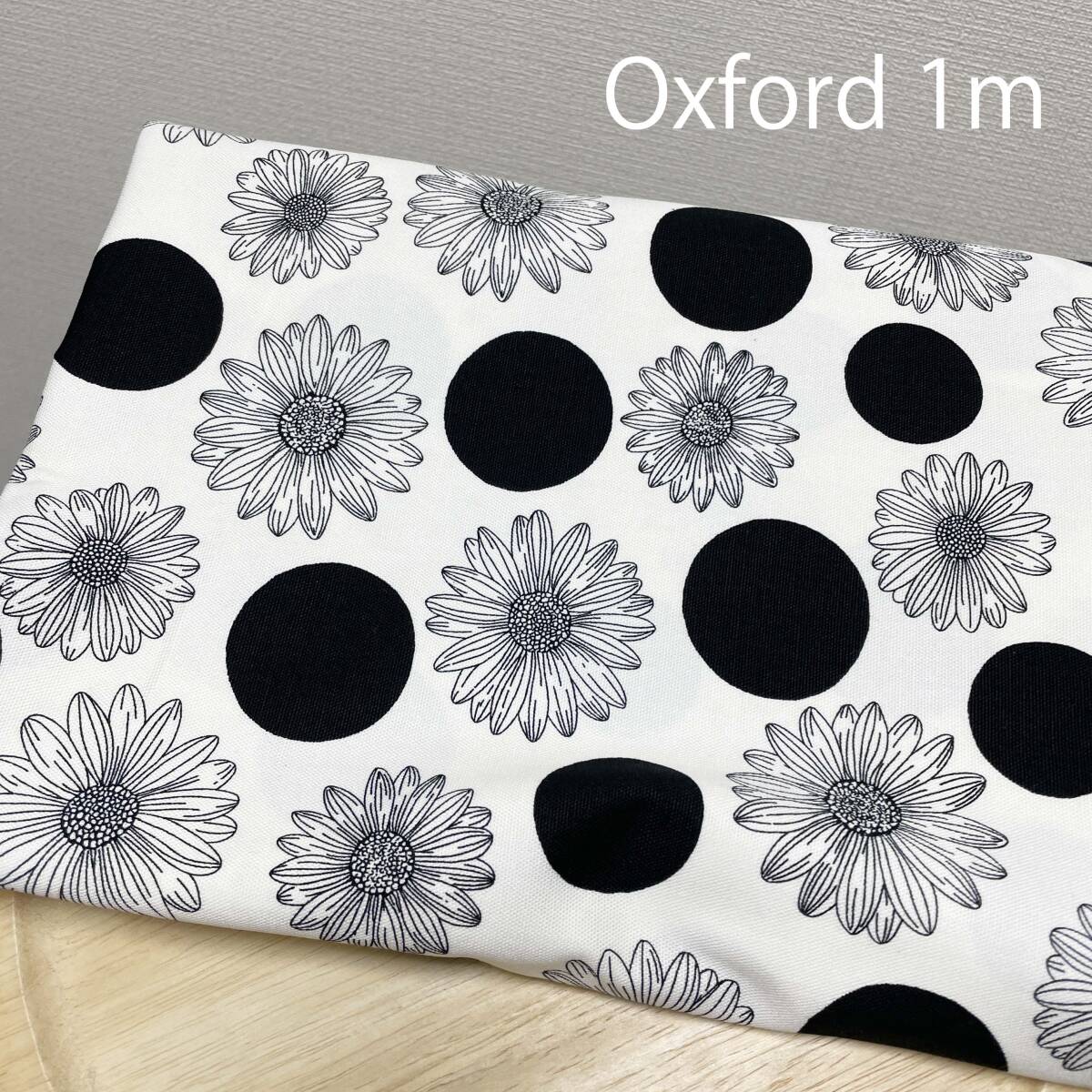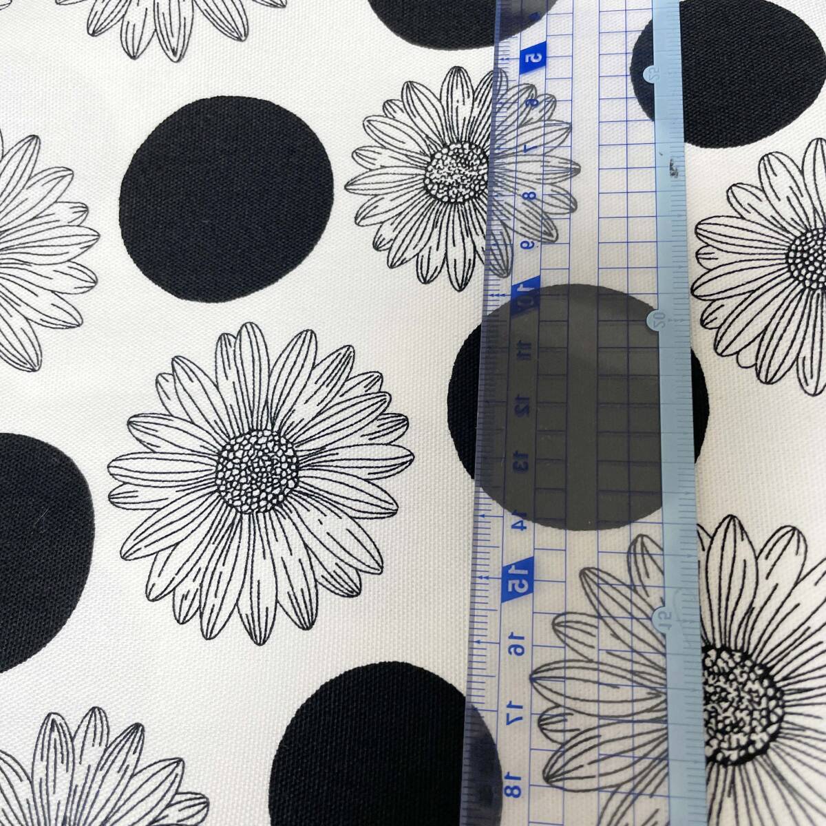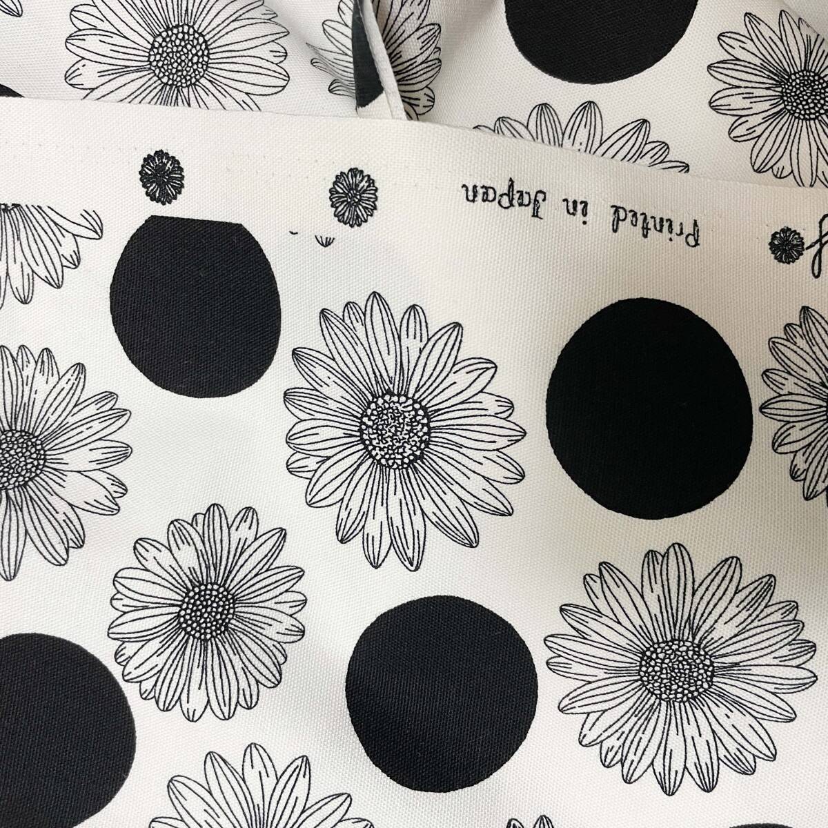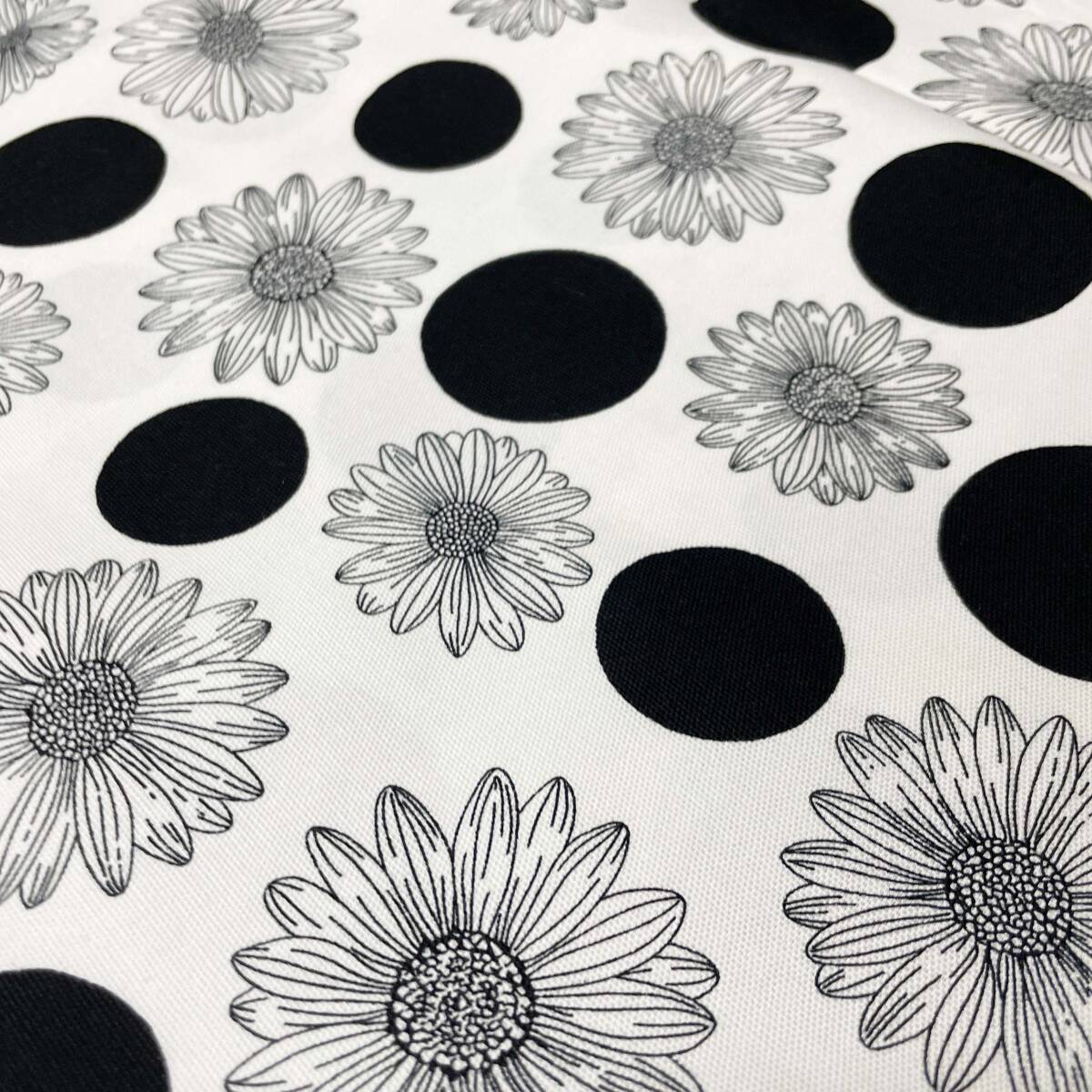 線描きマーガレットの花柄と水玉オックス生地はぎれモノトーン布コットン1m白黒