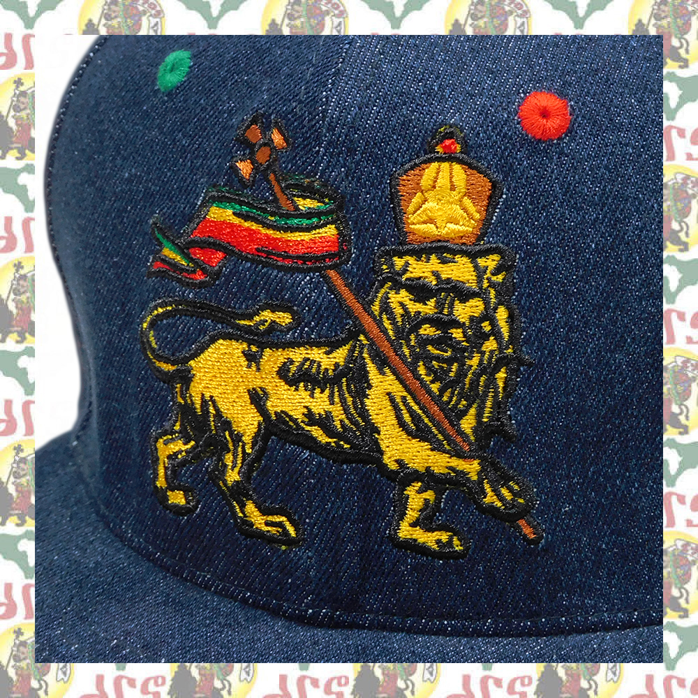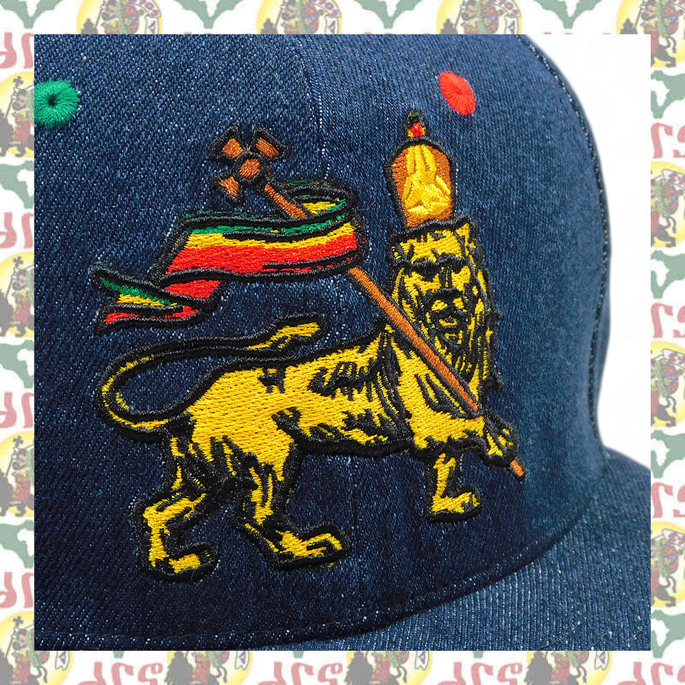 【drs】デニム刺繍スナップバック Lion of Judah モデル