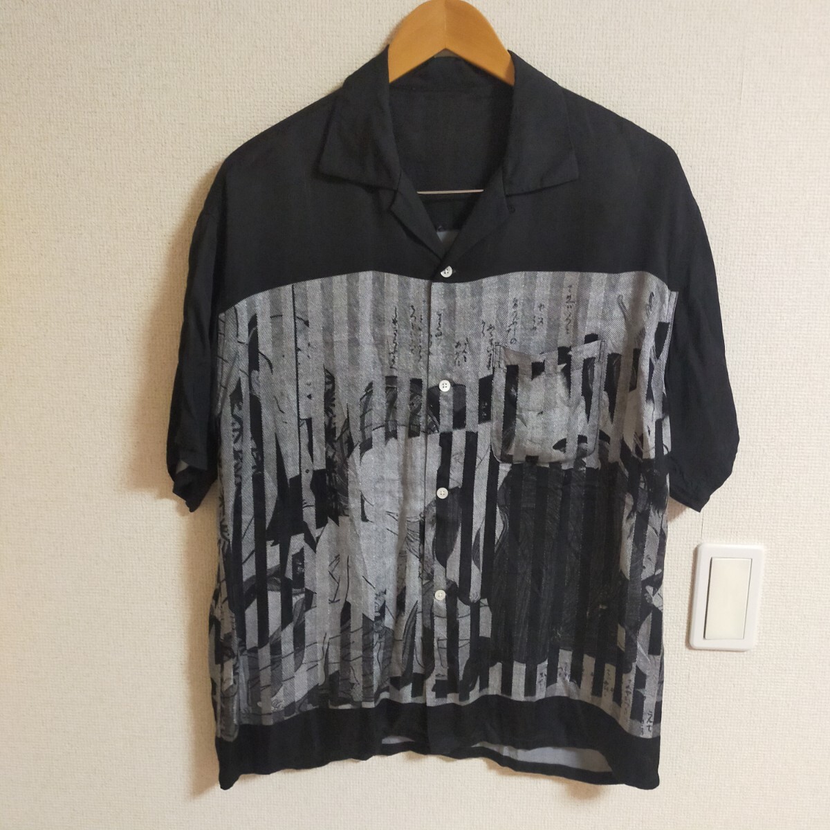 になります。 サイズ:M 実寸:肩幅52cm 身幅57cm 着丈71cmになります。 カラー:ブラック(黒) 状態は多少使用感・傷があるが使用に問題のあるダメージはない商品です。 舐達麻の賽 a.k.a.BAD SAI KUSHさんがモデルを勤めていたモデルです。 レーヨン素材のアロハシャツのような1着で 雰囲気抜群な1着です。 20SSモデル。 ユーズドでも殆ど見かけない希少モデルです。 レーヨン特有の毛羽立ちのような使用感と部分的に糸吊れ傷のようなダメージがあります。 使用に影響は御座いませんが使用感、小傷のある1着ですのでノークレーム厳守にてご検討ください。 |