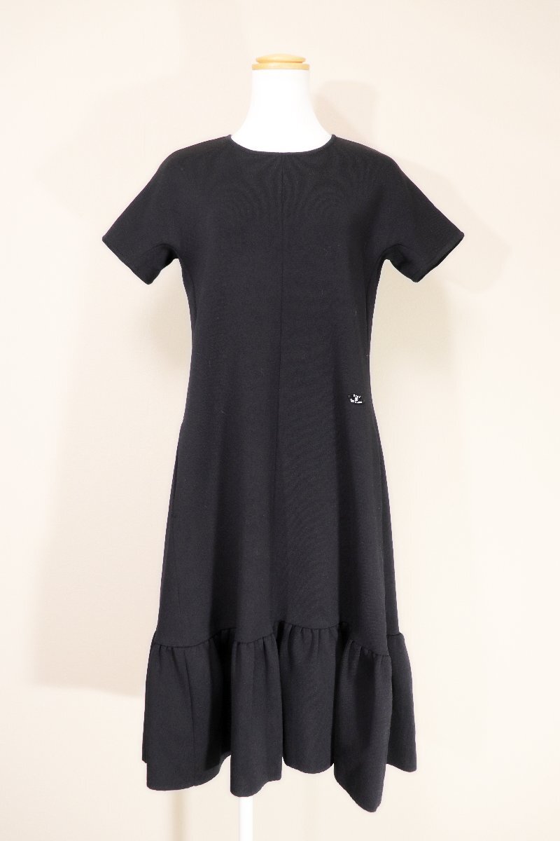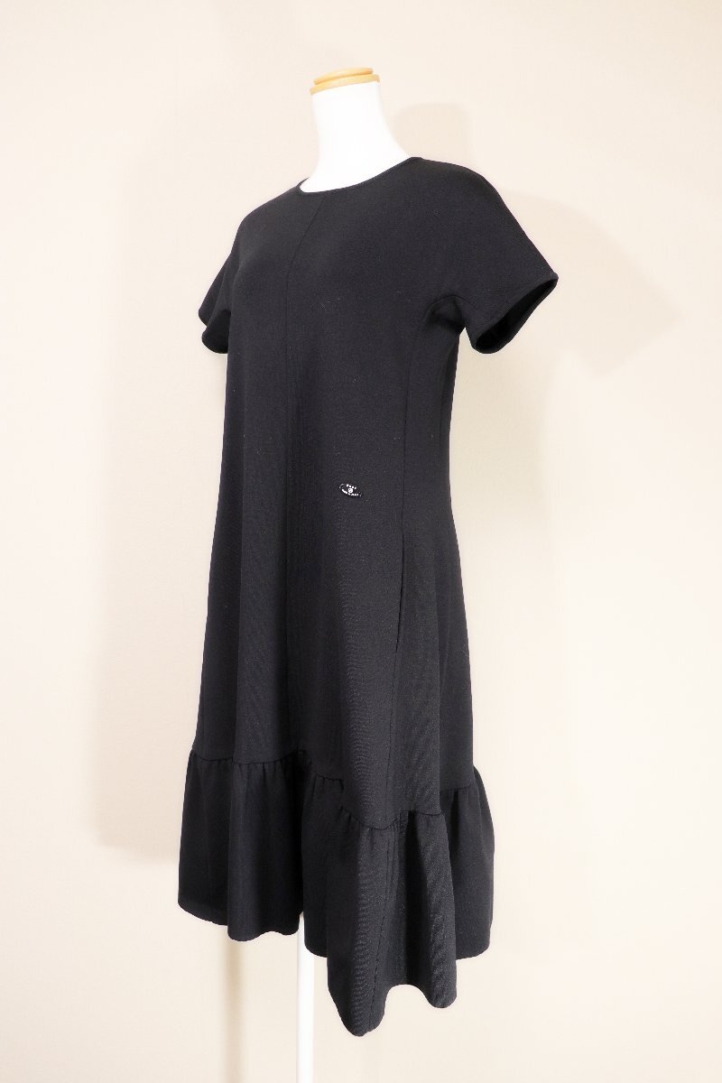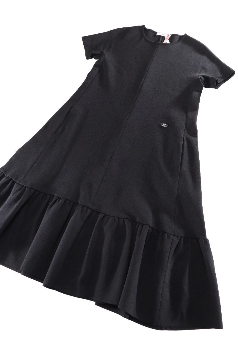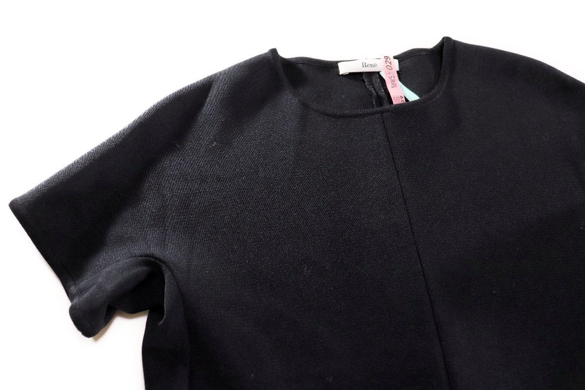 ☆美品2021☆Reneルネ/裾切り替えギャザー半袖ニットワンピース:36/黒xz208