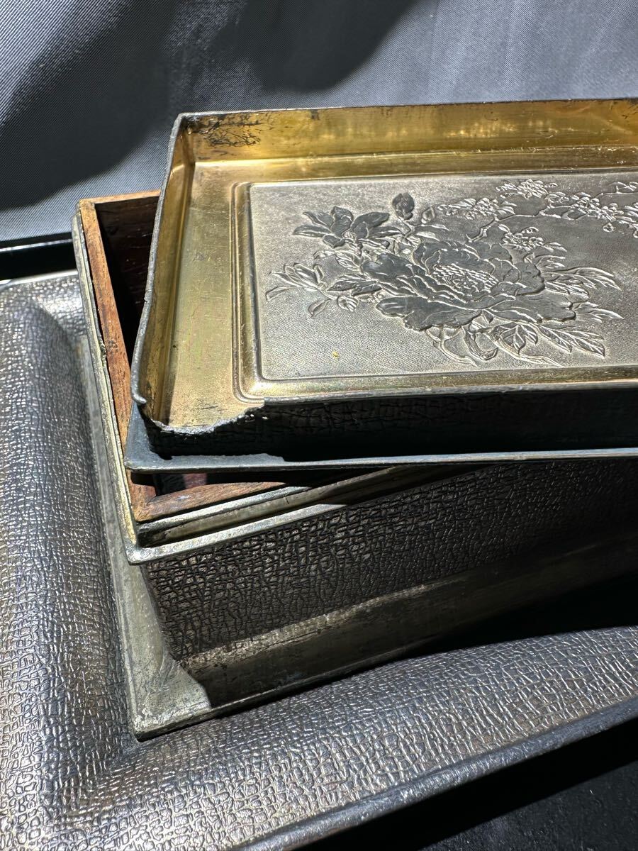 中古アンティーク 錫製 「Yヨット 一秀」刻印 煙草盆セット