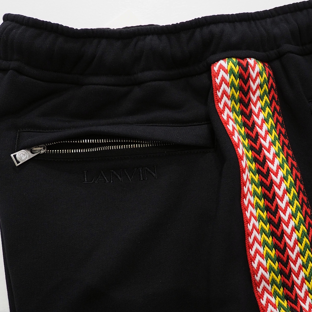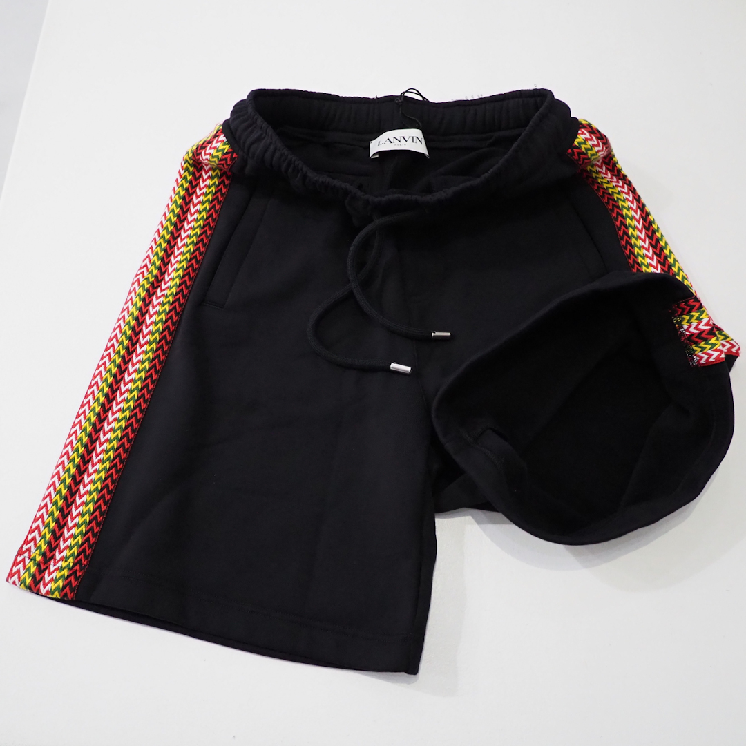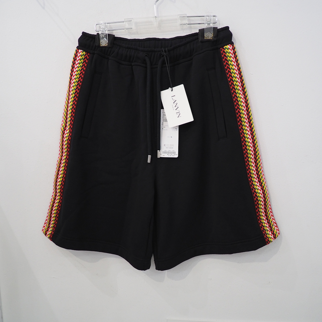 新品 定価116600円 ランバン 24ss 春夏 サイド 切替 スウェット ワイド ショーツ 黒 ブラック メンズ S M LANVIN ショート パンツ ライン