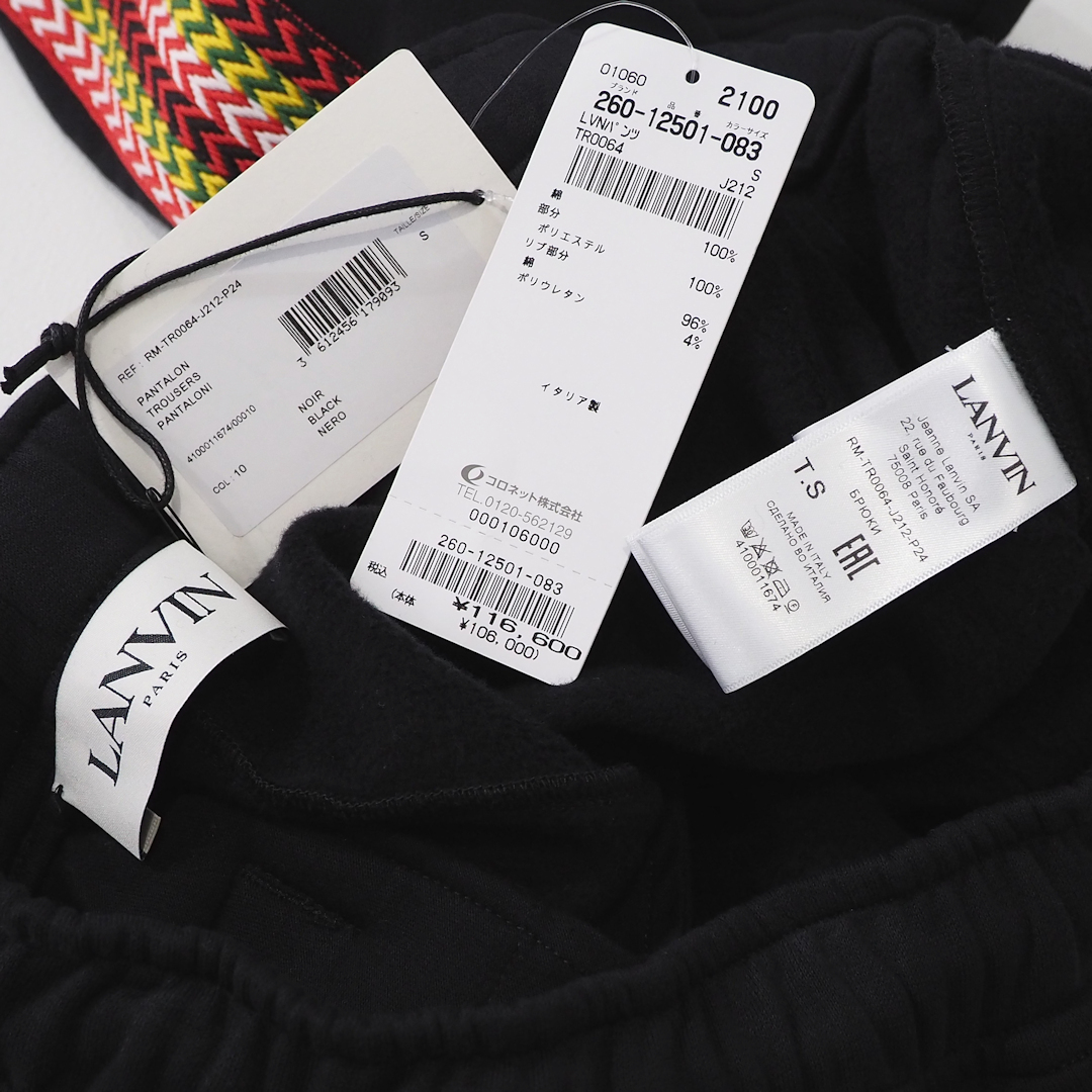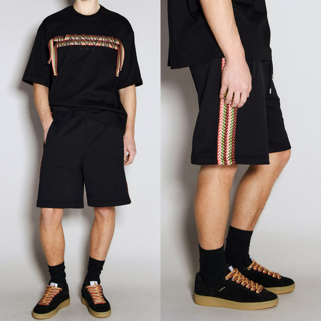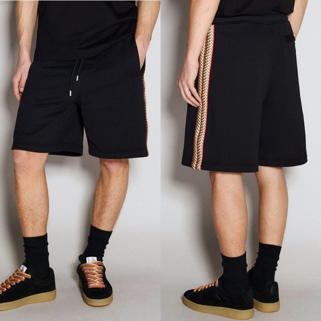 新品 定価116600円 ランバン 24ss 春夏 サイド 切替 スウェット ワイド ショーツ 黒 ブラック メンズ S M LANVIN ショート パンツ ライン
