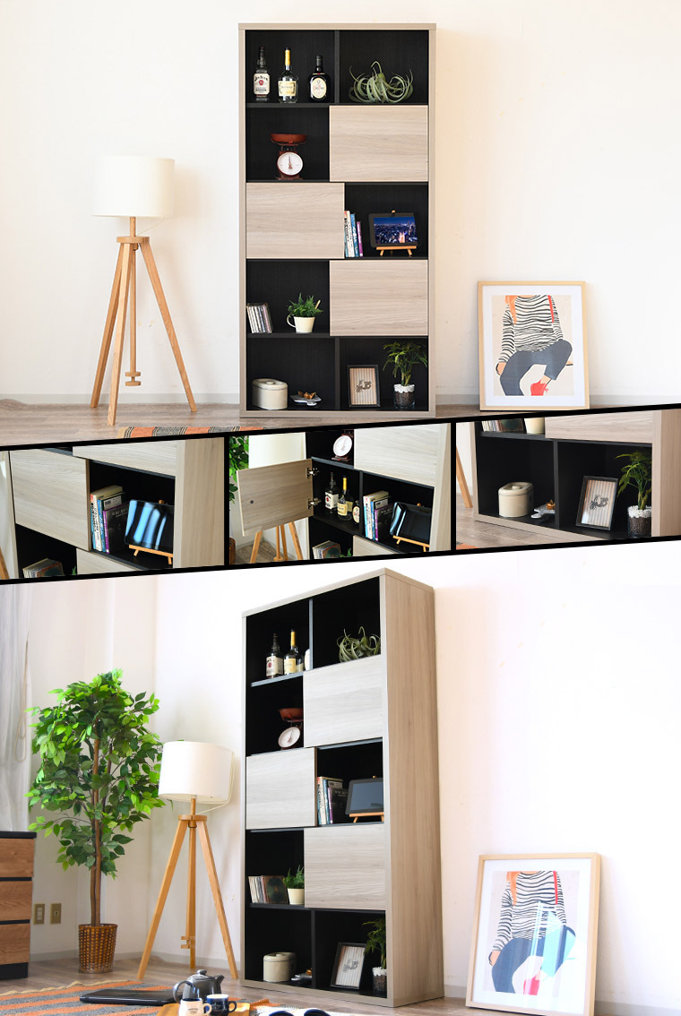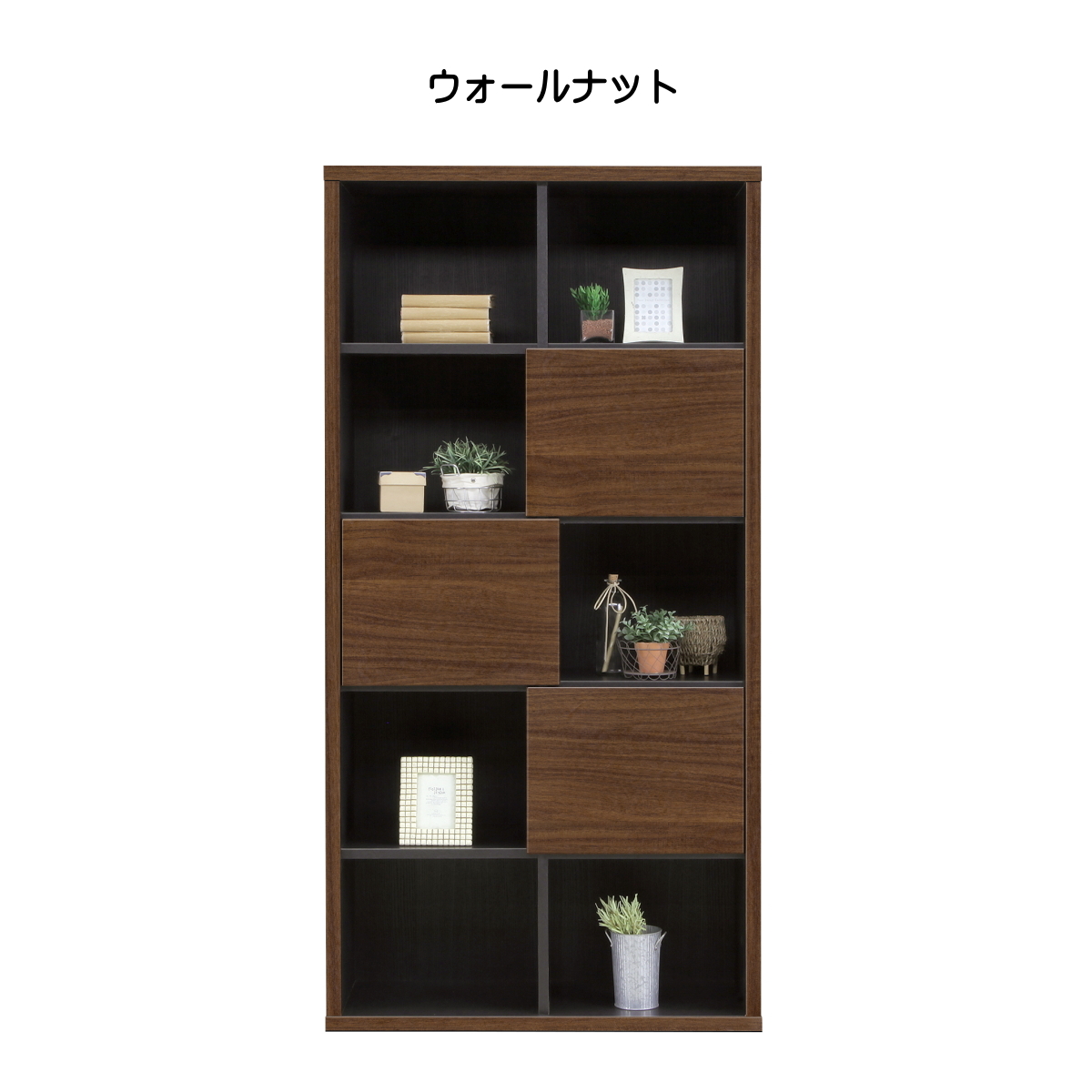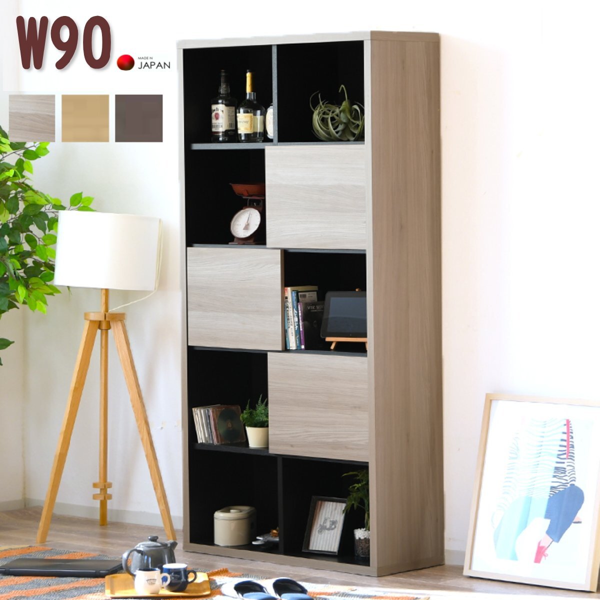 フリーボード ブックスタンド オープンラック ボックス 木製キャビネット ハイタイプ 幅90cm ウォールナット