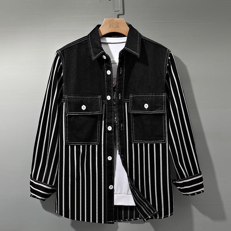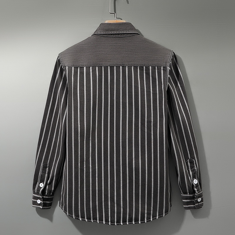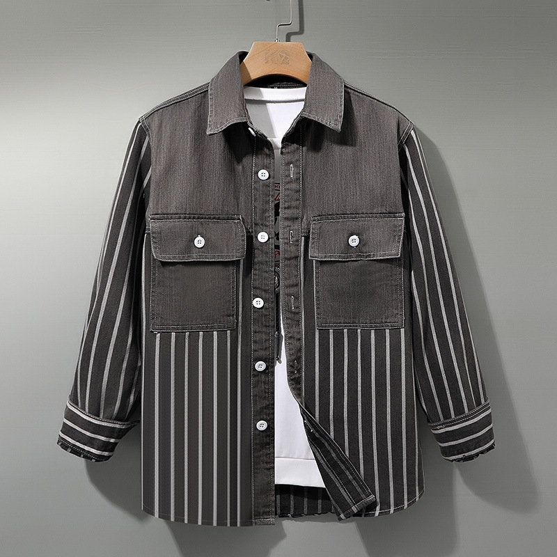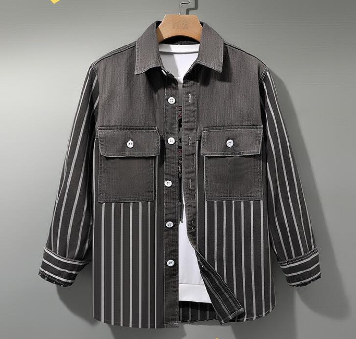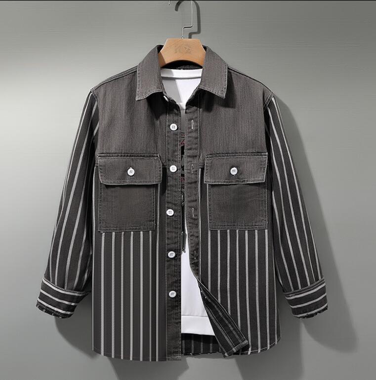 新入荷新品デニムジャケット メンズ ジージャン ストライプ 折り襟 シャツ 紳士 トップス ウォッシュ カジュアル グレーM~2XL