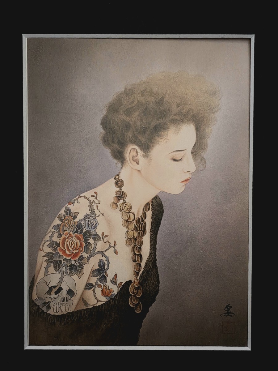 小妻要「薔薇 ROSES」、厳選、希少画集・額装品、人気作家、人気作品、 美人画、新品日本製額縁付、状態良好