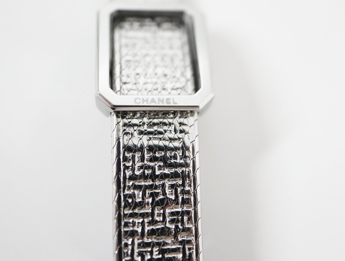 商品名 シャネルの2016年に新たに加わったコレクション、ボーイフレンド。 洗練された存在感のあるケースデザインが印象的なモデルです。 こちらはツイードデザインのステンレスベルトタイプです。 リューズにはブラックスピネルカポションがセッティングされています。 手元にございますので、下記手続きに則り即時発送できます。 詳細は、最後までお読みください。 商品説明 定価:825,000円(税込み) ブランド:CHANEL(シャネル) 型番:H4876 機械:クォーツ 素材:SS(ステンレス) 文字盤:ブラック ケース径:27.9×21.5mm 付属品:箱 保証書 (2016.12) 真贋鑑定済み、もちろん本物です。 腕回りサイズ:約14-16cm ※提携時計店にて動作点検、電池交換済みです。 (2025.4) ※通常のご使用で生じた機械内部の自然故障につきましてはご購入後、6か月以内であれば当店が保証させていただきます。 状態 Aランク 使用感のない綺麗な状態です。 |