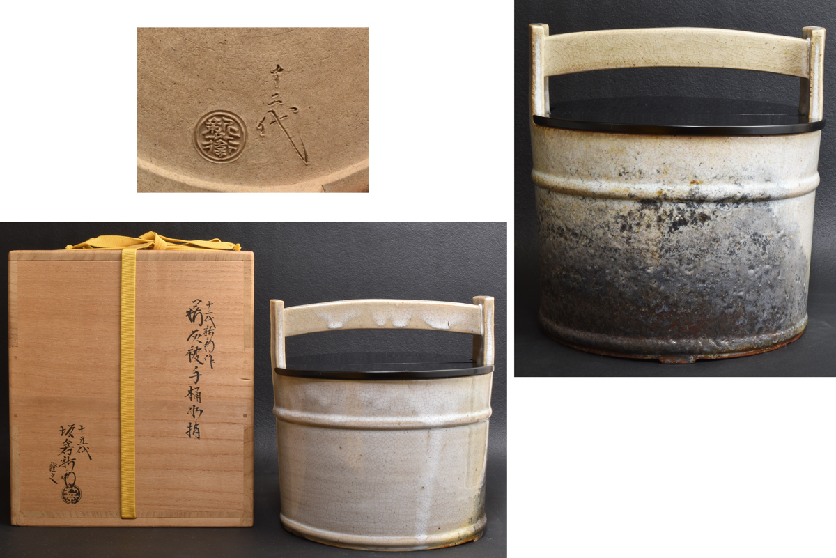 5633 十二代・坂倉新兵衛 水指 十五代・坂倉新兵衛識箱 萩灰被手桶水指 共箱
