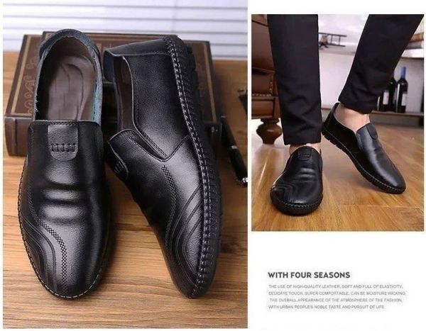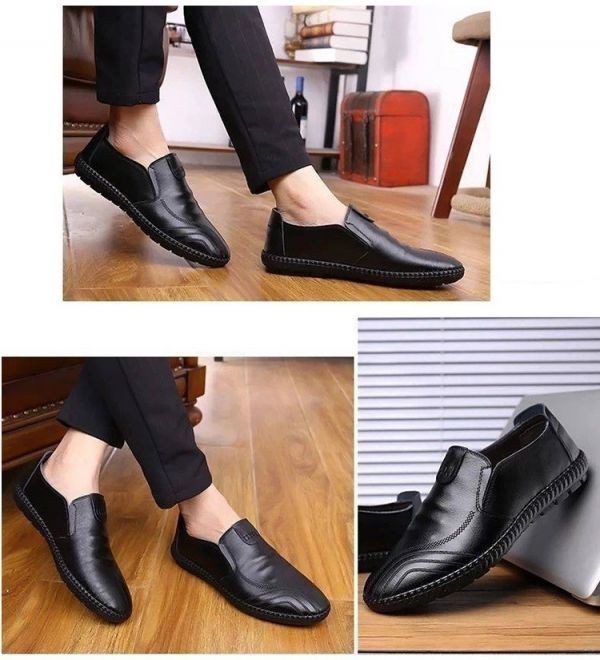 【25.5cm】【黒】sp1 メンズ スリッポン PU レザー シューズ ドライビングシューズ 軽量 無地 スニーカー カジュアル 合成皮革 紳士 靴