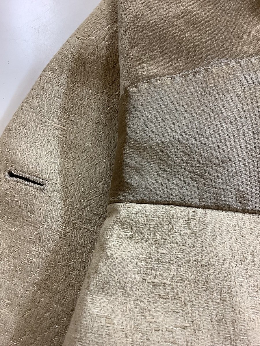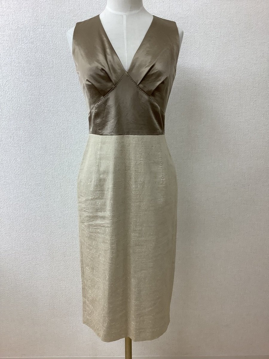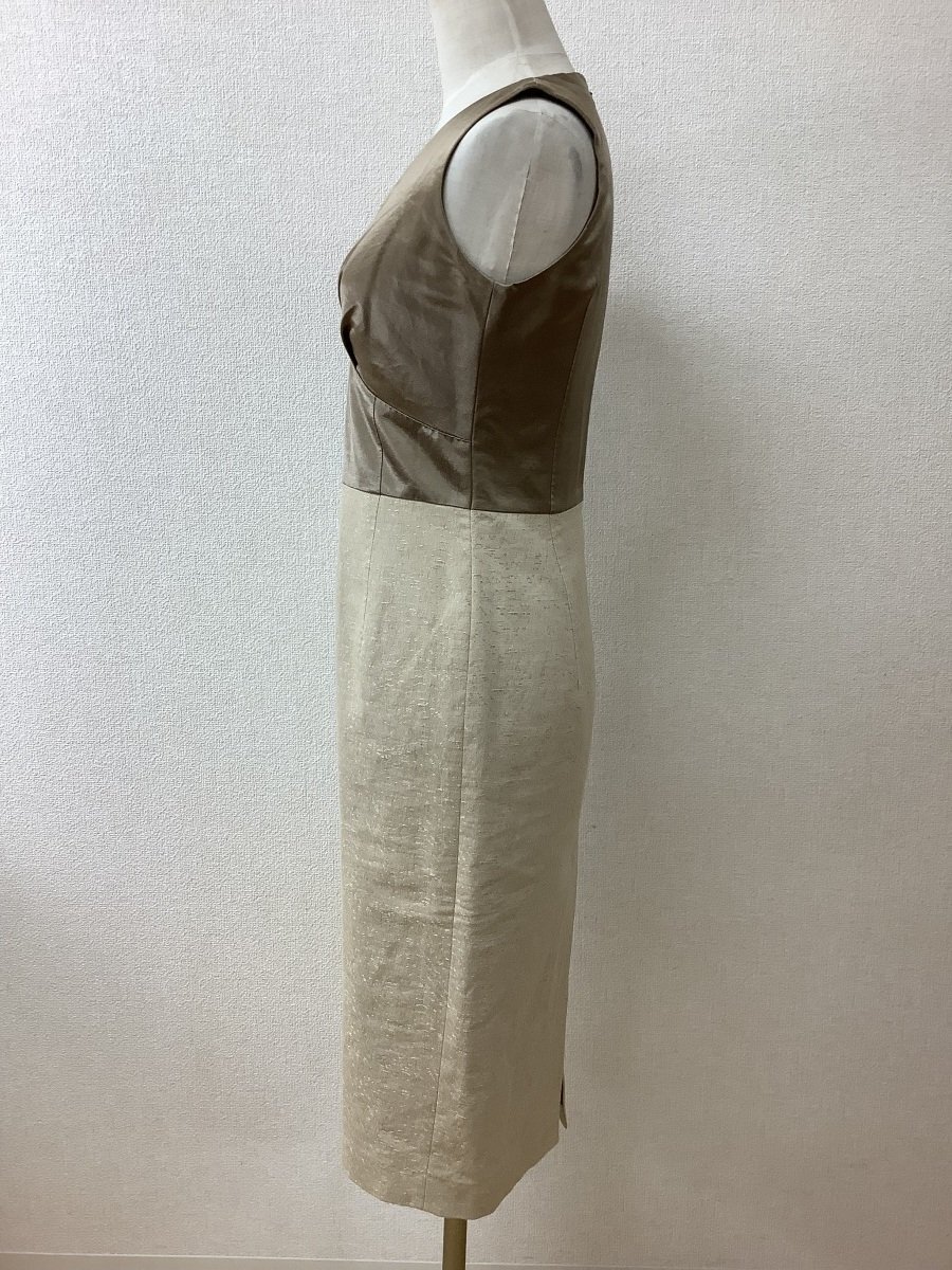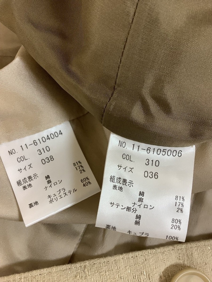 | 管理番号:136464 kulson カルソン ワンピーススーツ ベージュ地模様 表示サイズ:ジャケット38 ワンピース36 実寸(参考)