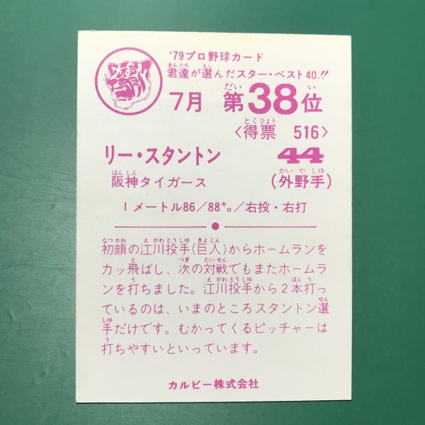 1979年 カルビー プロ野球カード 79年 7月 38位 阪神 スタントン   USH77