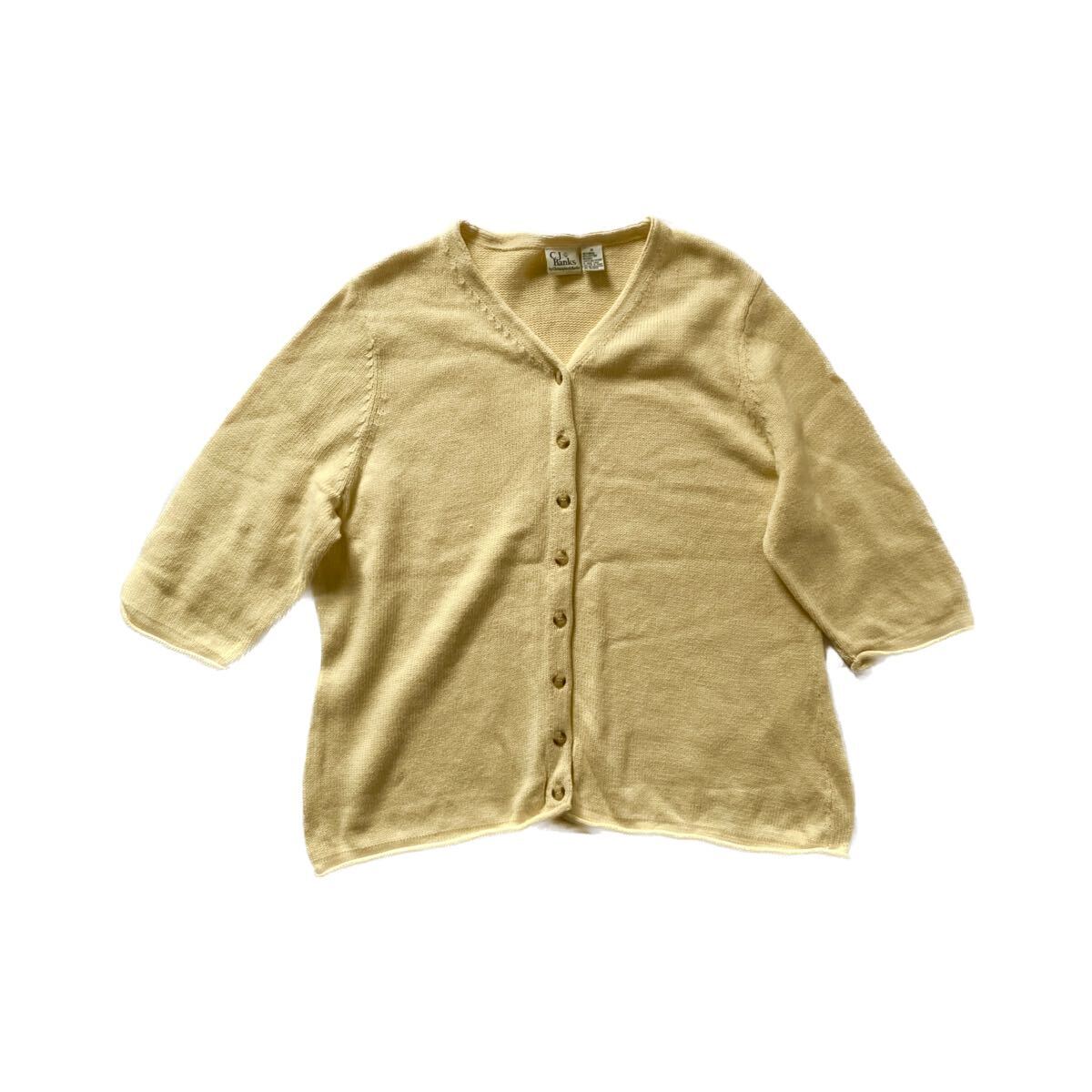 90年代レディース古着、ラミーコットンのニットカーディガンとなります。