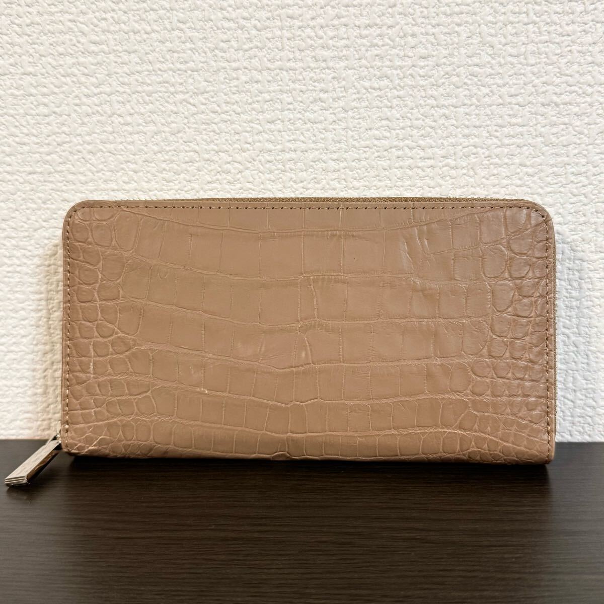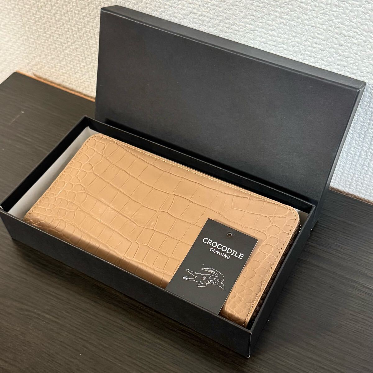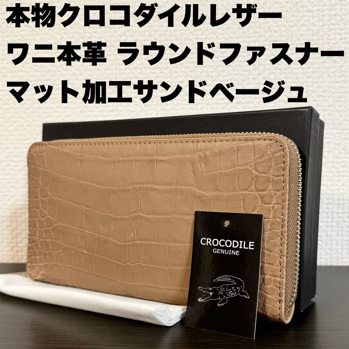 マット加工クロコダイル本革の長財布(サンドベージュ)になります。