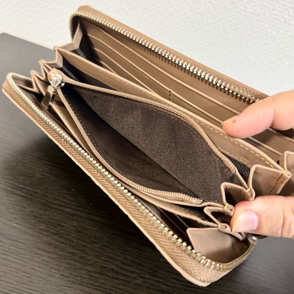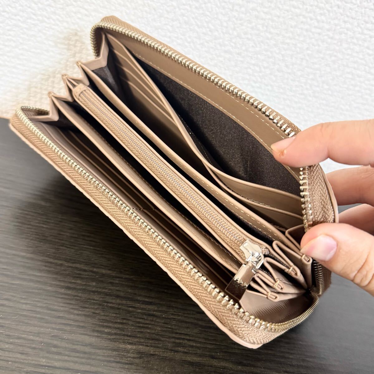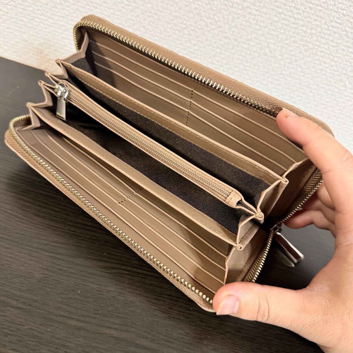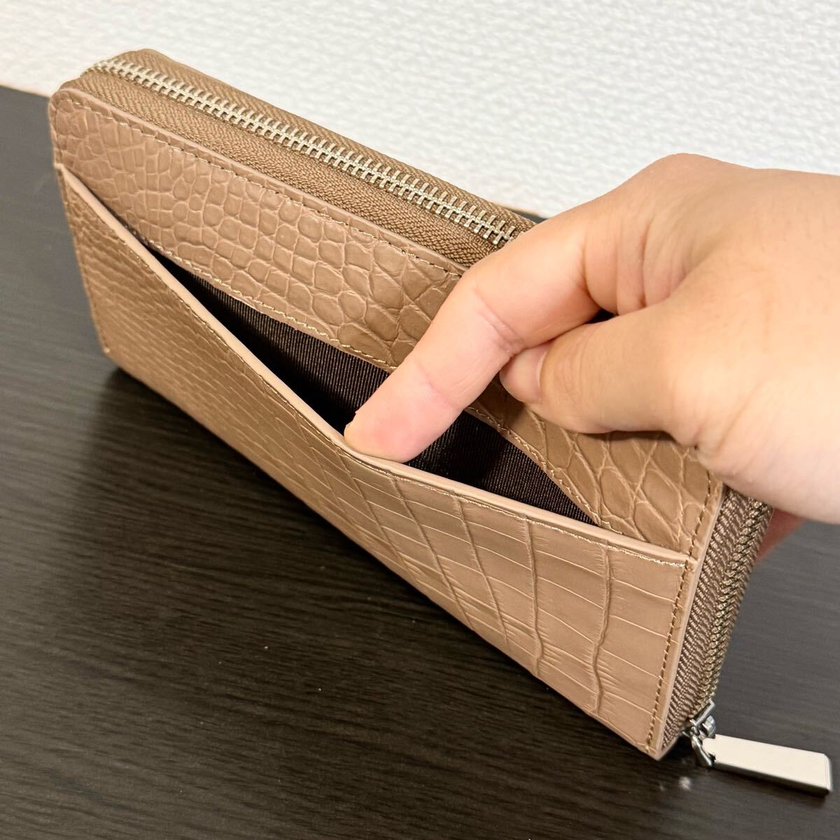マット加工クロコダイル本革の長財布(サンドベージュ)になります。