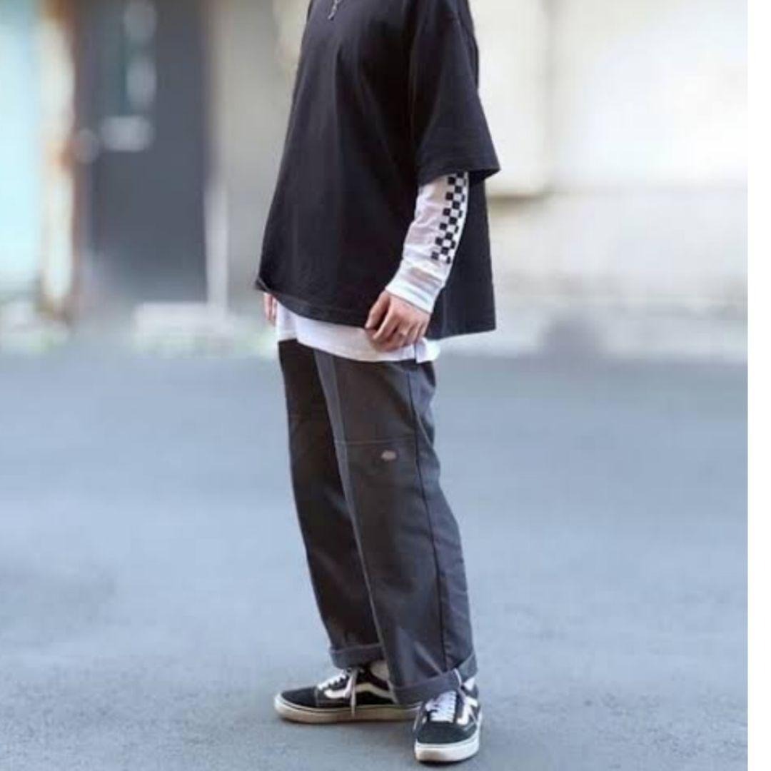 Dickies 874 よりも太いダブルニーは腿から裾までストンと落ちるルーズフィット ストレートで今の雰囲気にピッタリ♪
