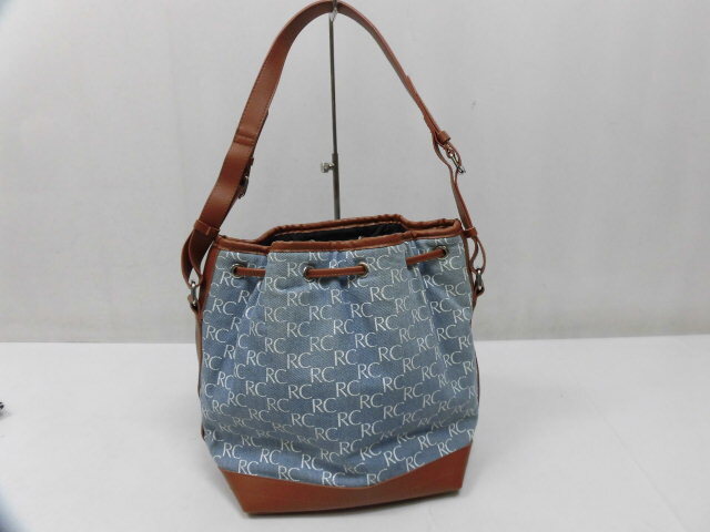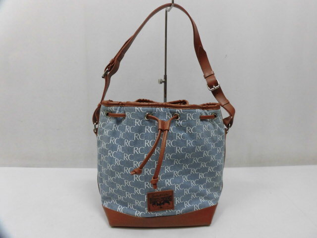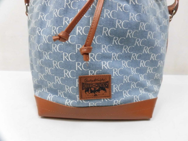 ■ブランド・商品名:RODEO CROWNS ロデオクラウンズ RCロゴ総柄 巾着型 デニムバッグ ハンドバッグ ショルダーバッグ ブルー×ブラウン 青 茶