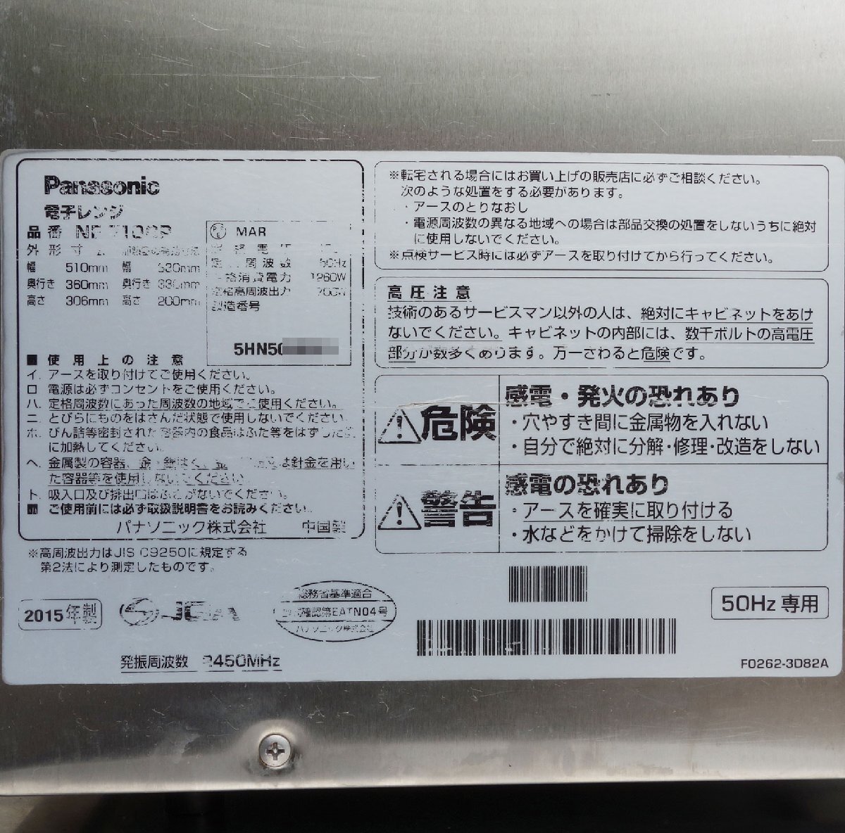 送料無料 ◆ パナソニック 電子レンジ NE-710GP ◆ 700W 22L 単相100V 15年製 50Hz 厨房 コンビニ