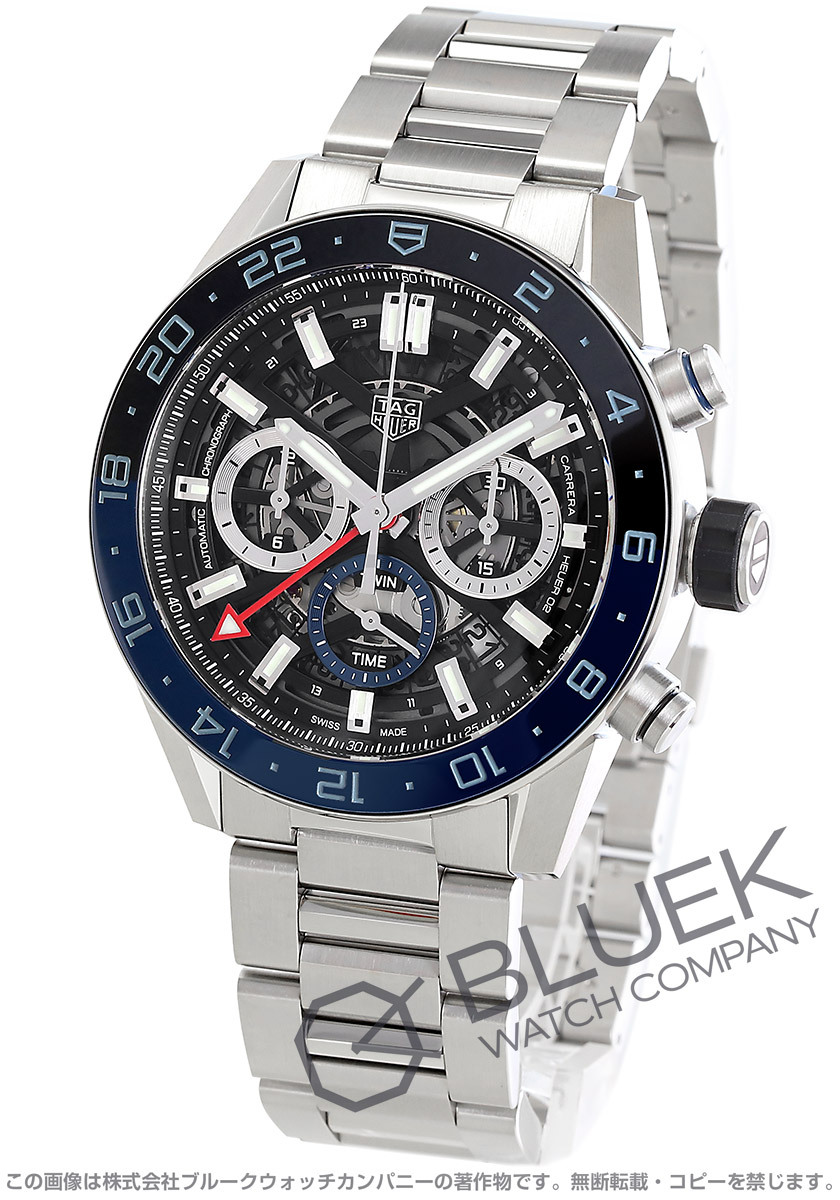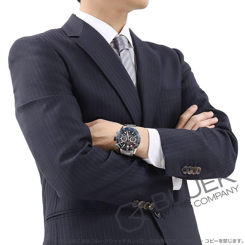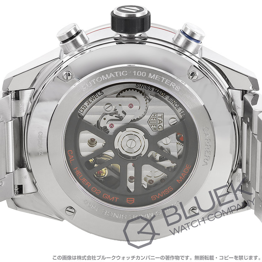 重厚感溢れる厚さ17ミリの45ミリ100m防水ケースに80時間のロングパワーリザーブを誇る自社製自動巻きクロノグラフムーブメント「ホイヤー02」を搭載したカレラは、重さ220グラムずっしりとした着け心地も男らしいタグホイヤー人気の高級スポーツモデル。ブルー×ブラックで昼夜が判別できる24時間スケールを備えた固定式セラミック製ベゼルと機械の内部構造を覗くスケルトンダイヤルの赤いGMT針で2つ目の時刻が読み取れます。中でも横型インダイヤルに30分計と12時間計、6時にスモールセコンド、4時30分の窓に日付を表示するこのモデルは、スポーティなデザインも魅力。手元を格好よく彩って国内外問わず活躍し、機械が鑑賞できるケースバックもメカ好きにはたまりません。 |