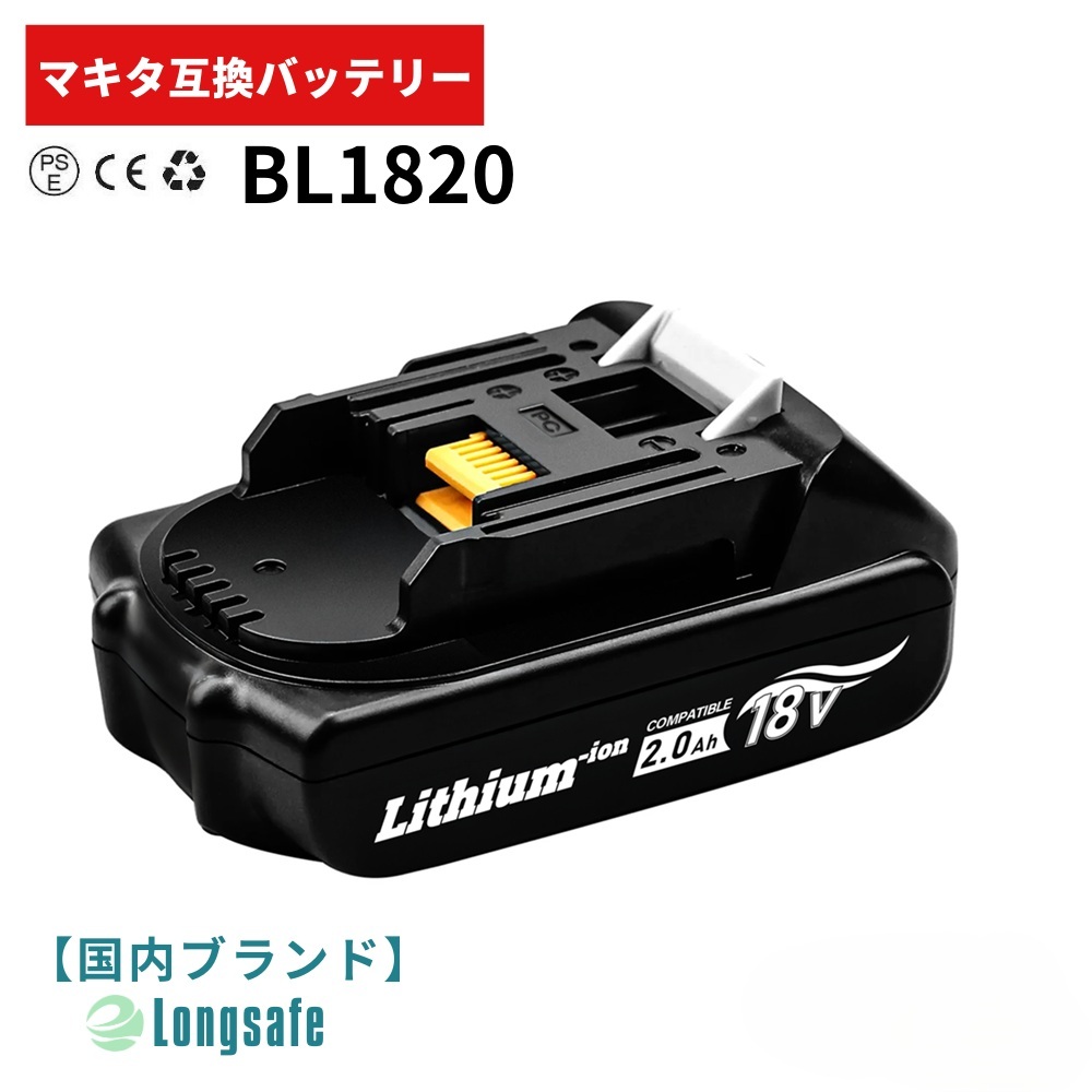 【18v BL1820 マキタ 互換バッテリー 】電圧:18V 容量:2000mAh【交換可能バッテリー】 BL1815,BL1830,BL1840,BL1850,BL1860, 急速充電器DC18RCなどに対応。