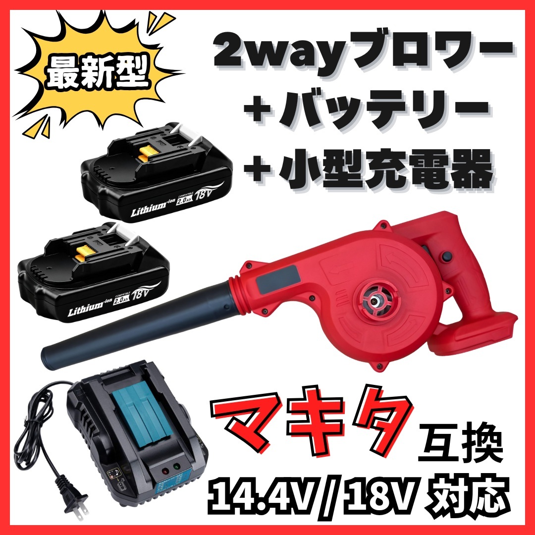 (A) マキタ Makita 互換 ブロワー 赤 ブロアー ( UB185DZ + BL1820 2個 + DC18RC ) セット