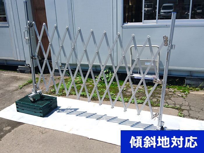 | 商品説明 | 自分で簡単取り付け可能! 軽くて操作簡単。防犯対策にどうぞ。 家や倉庫の入り口、車庫前など簡単に取り付けができます。 傾斜地や段差に対応する機能を備えた新考案ゲートです。