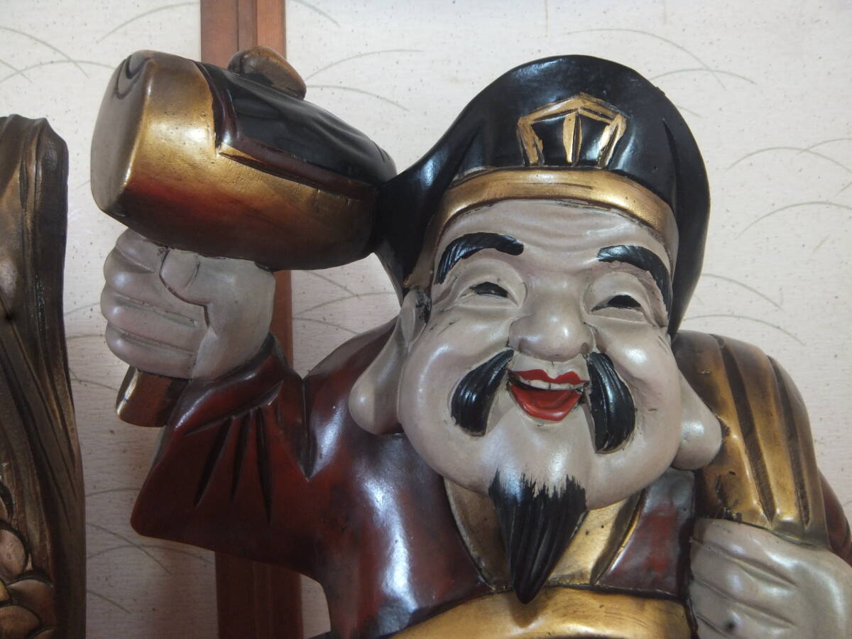 【恵比須・大黒】 木彫り 仏像 彫刻 七福神 縁起物 置物 高さ55㎝ アンティーク オブジェ