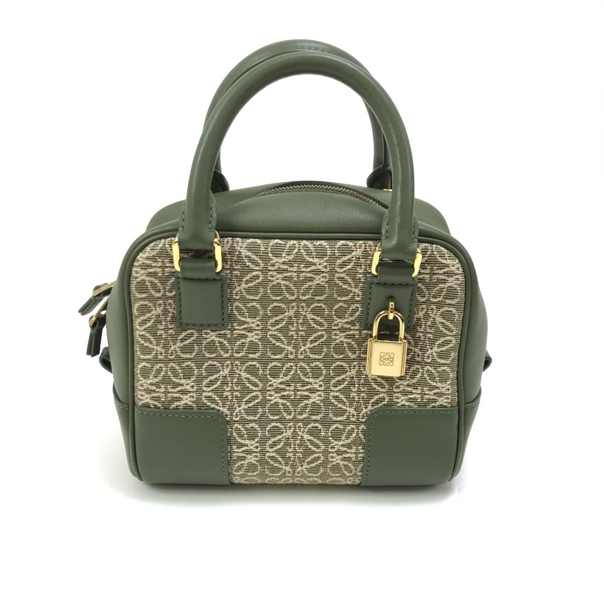 $$ LOEWE ロエベ 2WAYショルダーバッグ アマソナ16 アナグラム ジャカード 鍵欠品 A039N21X03 グリーン やや傷や汚れあり