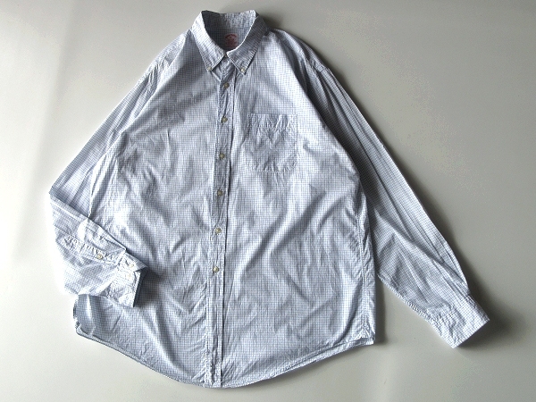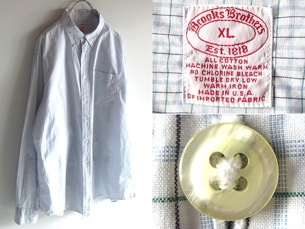 希少 USA製 ビンテージ Brooks Brothers ブルックスブラザーズ チェックシャツ BDシャツ XL ライトブルー 大きいサイズ ネコポス対応