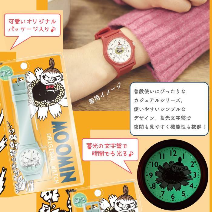 | 人気のムーミンのキャクターが描かれた文字盤のカジュアルウォッチです♪ 白文字盤に鮮やかなイラストが映えます♪ 蓄光文字盤で夜間も見やすく機能性も抜群です♪ 可愛いブリスターのパッケージ入りです。プレゼントにもオススメです♪ |