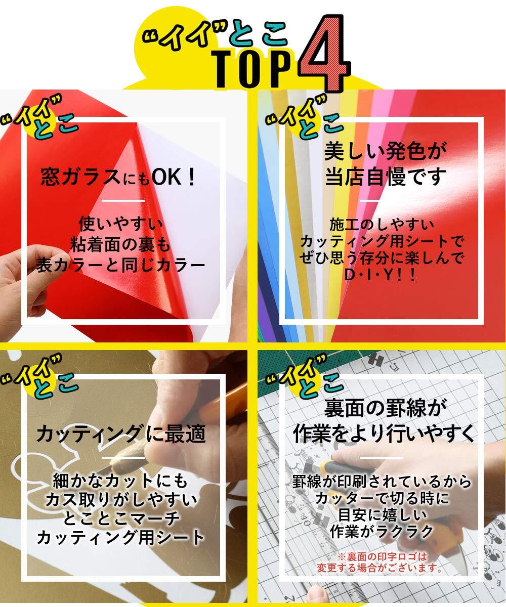 屋外での紫外線による色あせ、積雪など使用場所、状況により劣化を早める場合がありますので、ご了承下さいませ。※生産時期により、多少の色味、光沢感、粘着力、剥離紙の印字ロゴが異なる場合がございます。数十メートルロールから切り売り販売しておりますので、同色同質感にて色味を統一したい場合などは、同時期(同カート)の購入をお勧めいたします。できる限り同ロールを使用しカット致します。