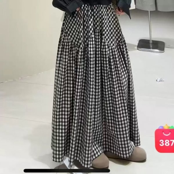 m スカート レース ゆったり チェック柄 フリーサイズ 肌触り 通気性抜群 大人可愛 ナチュラル 楽ちん 裾広がる ブラック 綿100%