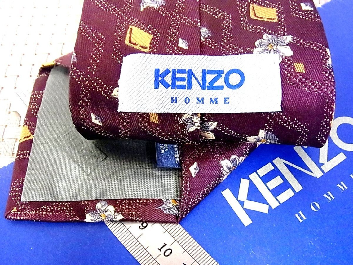 ♪38150C♪良品【刺繍 花 植物 菱形 柄】ケンゾー【KENZO】ネクタイ