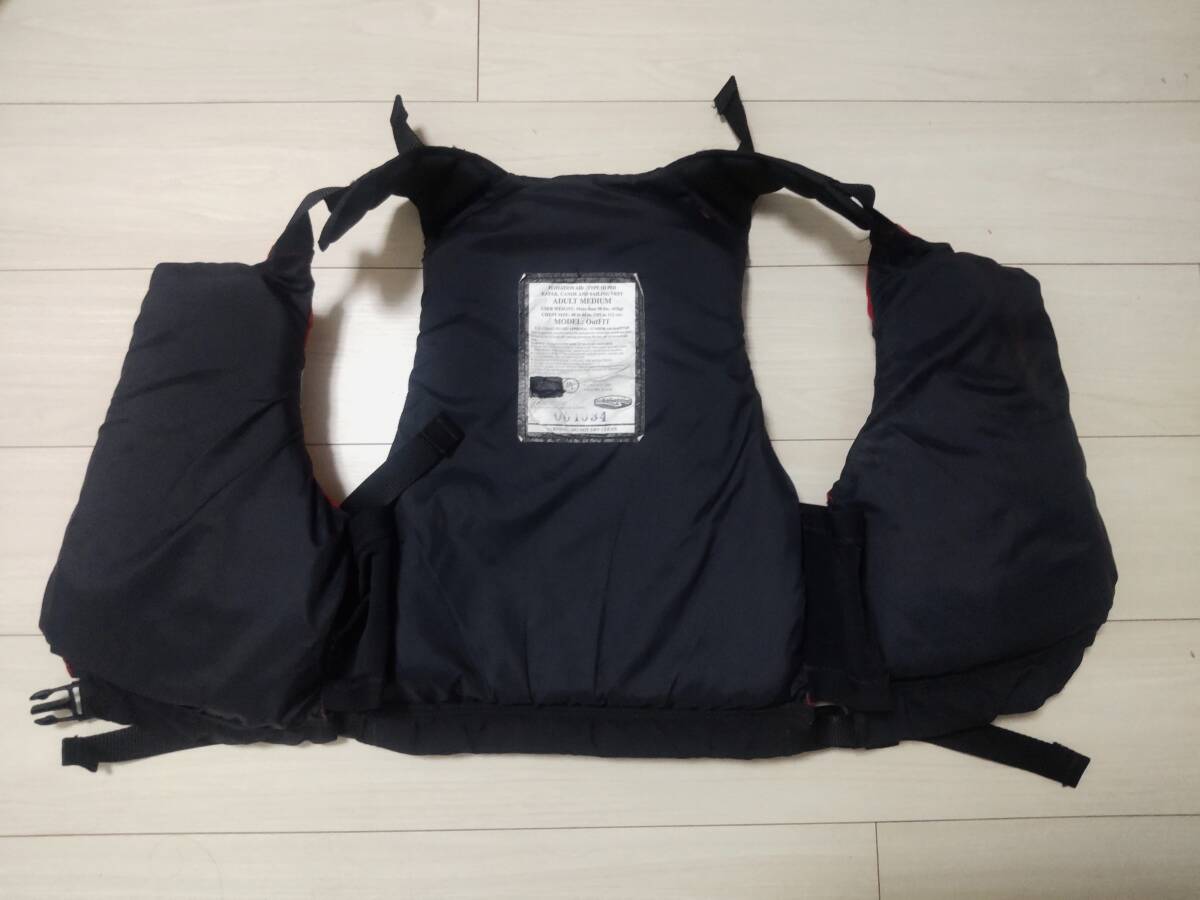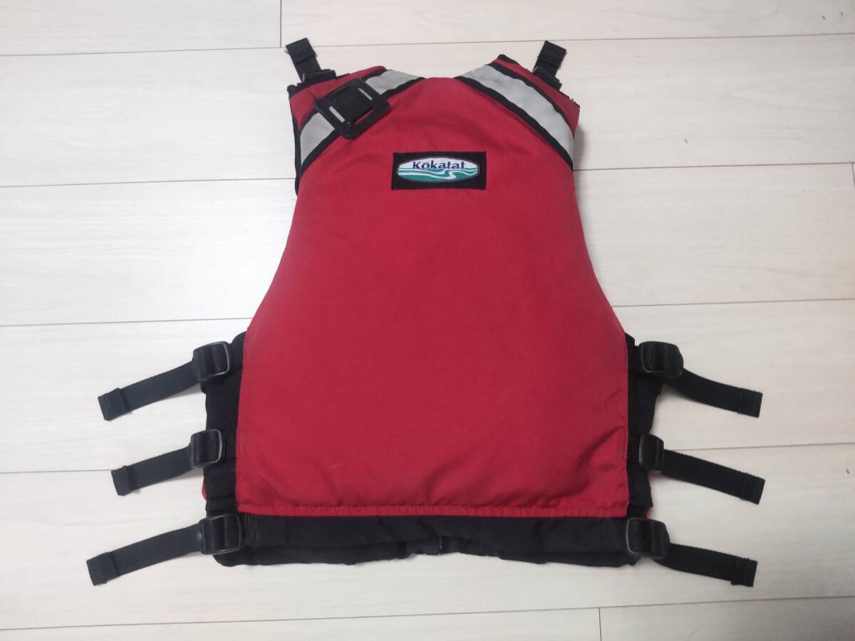 アメリカ、KOKATAT(コーカタット)社のPFD(ライフジャケット)です ハイクオリティのカヤック関連の商品で有名なブランドです ■モデル名はOutFIT(アウトフィット)です 昔のモデルになります ■サイズは大人用のMになります 表示には胸囲40〜44インチ(102〜112cm)とあります また体重は41kg以上とあります 両脇にあるストラップで調節が出来ます 素人採寸ですが着丈(背面側中心でで)46cm ありました ■アメリカ製です ■正面に3つポケット類が付いております 左右のポケット内側と中心ポケットの上にはDリングが付いております ■正面と背面の一部には反射素材が付いております ■背中にはコーカタットのマークが付いております ■ユーズドになりますので使用感(全体的な薄汚れ)があります 反射素材に擦れや汚れ、一部剥がれ、内側のタグにマジックで塗りつぶした箇所がありますのでよろしくお願いします(写真4.9.10枚目をご参照下さい)■カヤッカーの方いいがでしょうか 是非よろしくお願い致します
