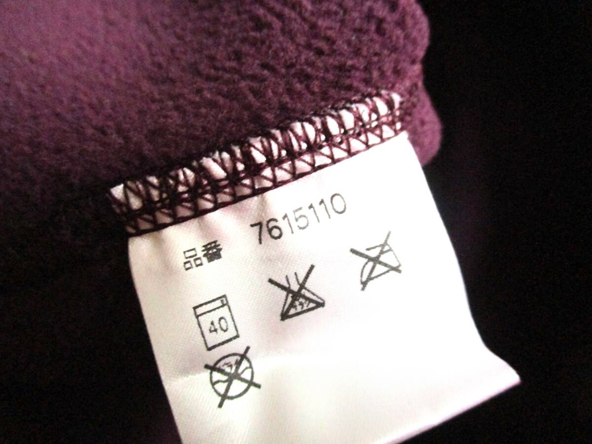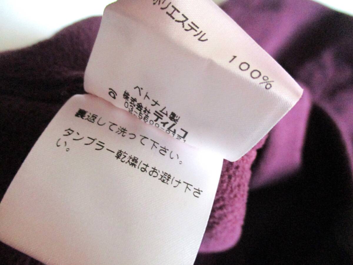 サイズ表記はL、100%ポリエステル、色はボルドーです。